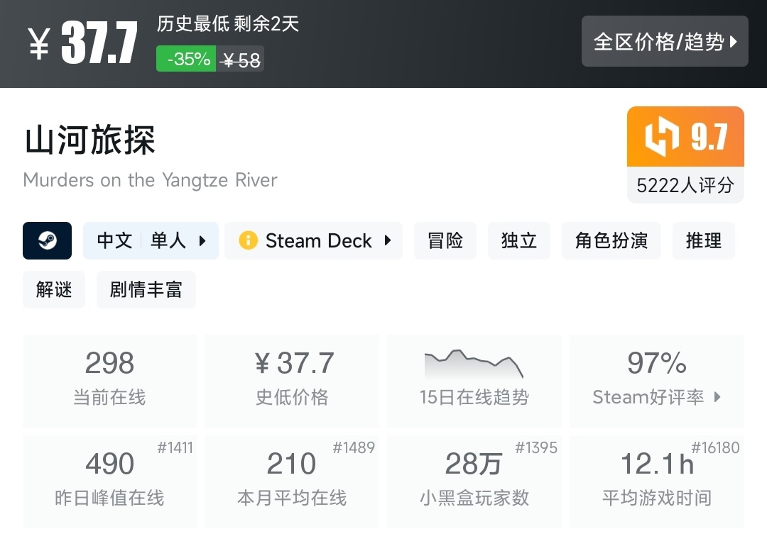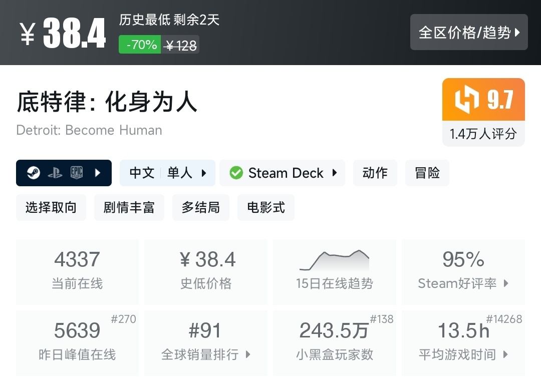 童年經典,4399上玩過。現在steam雖然不是史低,但小黑盒cdk券後已經是超史低。目前最終大結局也已經推出。