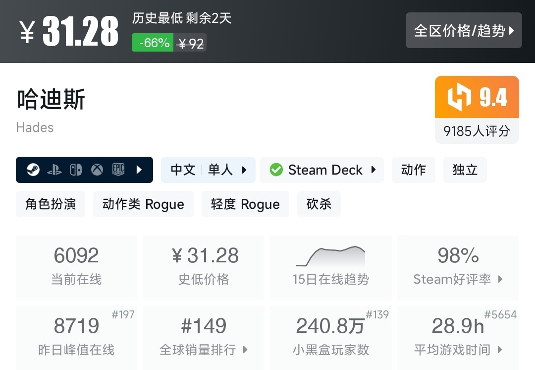 1折新史低,可以閉眼入。第三部今年也將推出,但價格實在不算美麗。2代10多塊的價格倒是入坑好機會。