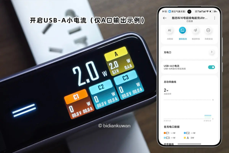 接入米家则是10号Ultra的另一项“大杀器”,相当于白送了一个专业U表(C表)。你可以在APP中切换4种快充场景,也可以独立控制3C+1A的开/闭、设置延时关闭,开启A口小电流模式,监控各接口的电压电流智能分配。实时功率曲线可视化,支持OTA固件升级,拓展玩法未来可期。
