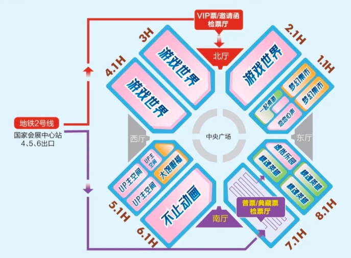 先是进场,既然前面建议大家选择地铁出行,我们就以地铁为例,到达2号线国家会展中心站后从4/5/6号出站口出站。出站后购买普票或典藏票的朋友朝南走,从7.1H检票厅进场;手持VIP或邀请函的老板们请往北走,从北厅进场。