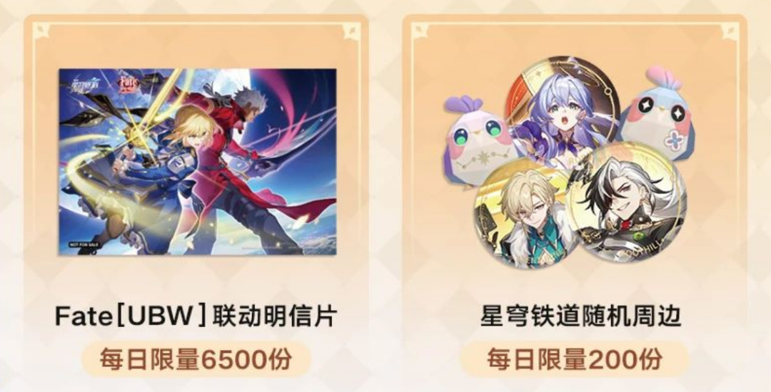 在BW上当然少不了二游。首先登场的是米哈游《崩坏:星穹铁道》,展台位于3H馆-3A28。参与互动打卡可获得明信片一张,每日限量6500份。7月11日正好是《崩坏:星穹铁道》与Fate联动开启之日,《崩坏:星穹铁道》展台还设置了联动参与互动,打卡可获得Fate[UBW]联动明信片,并且有概率获得随机周边一份,明信片每日限量同样6500张。