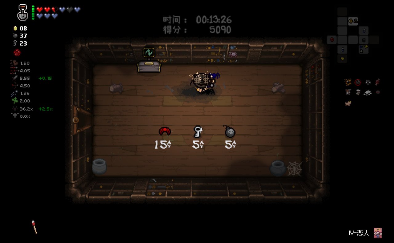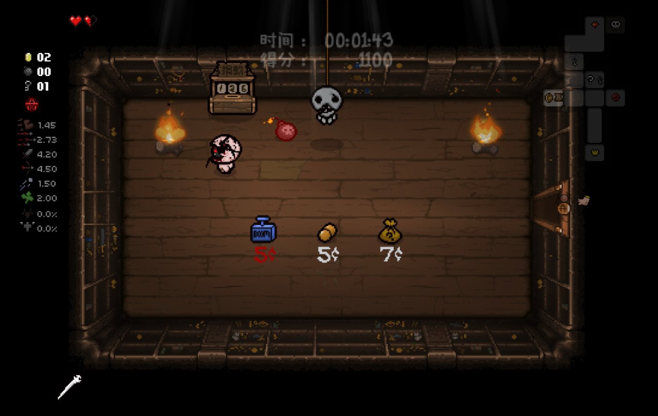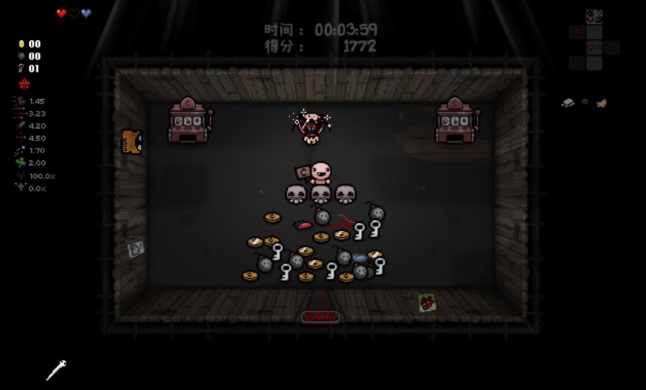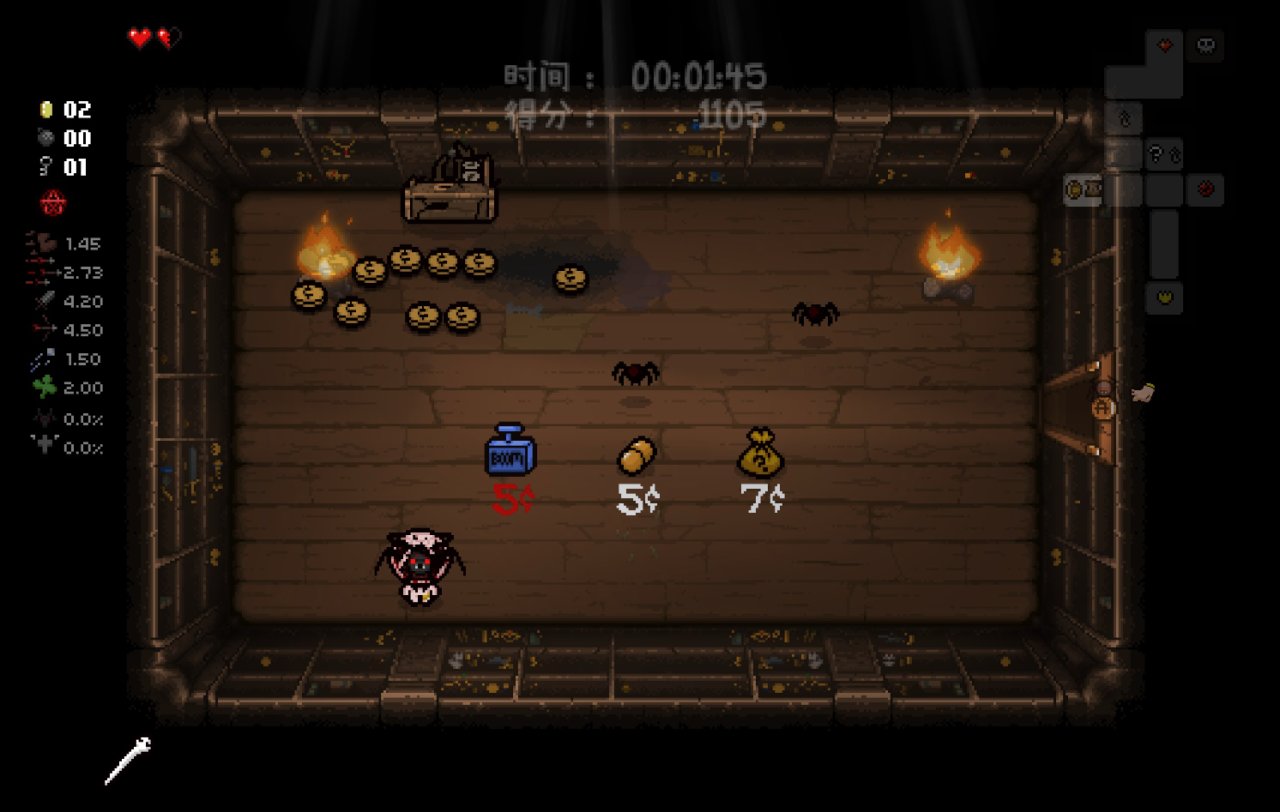 此時我們已經完成了我們能做的所有準備工作,總血量(半顆紅心+一顆魂心)<心之容器數量(2格血上限)、鑰匙數量<2、擁有至少五塊錢。