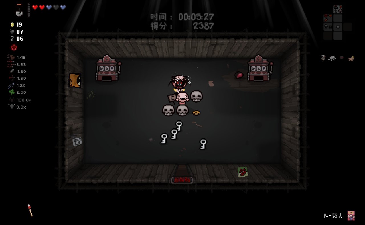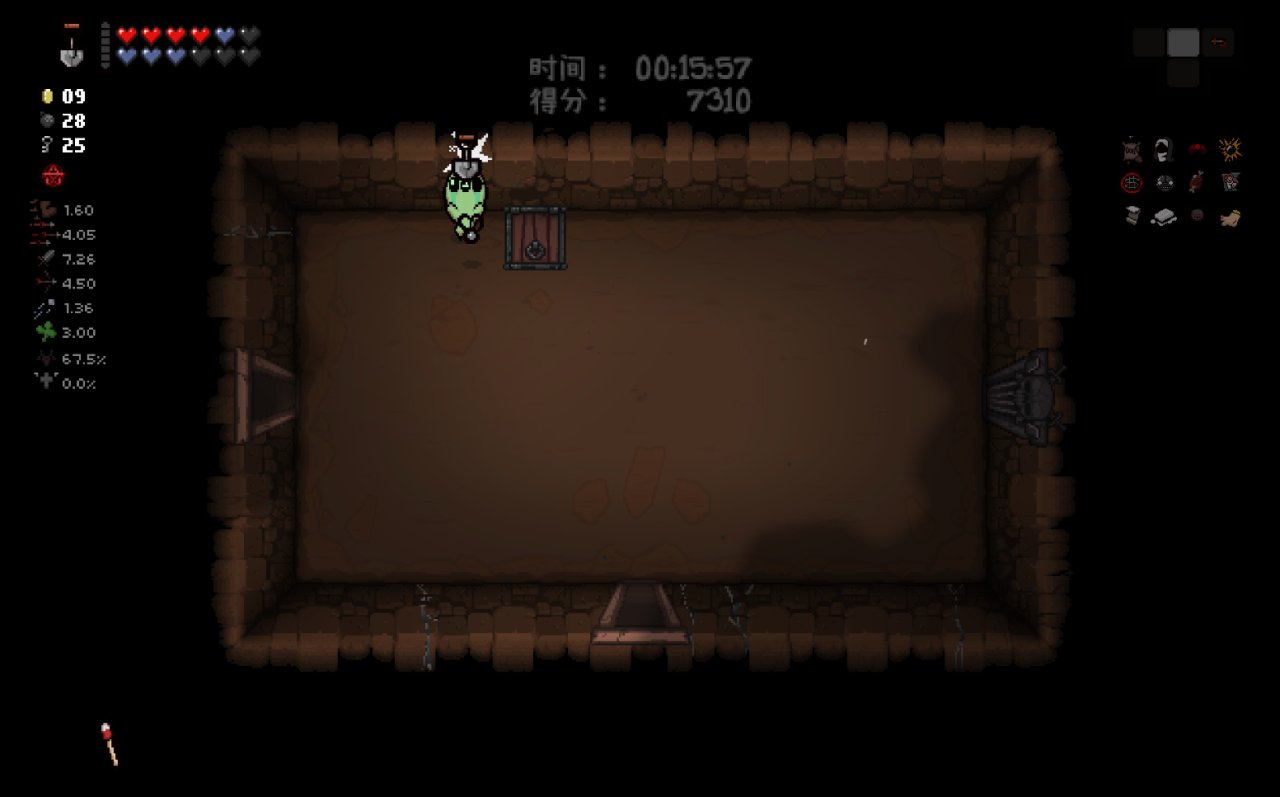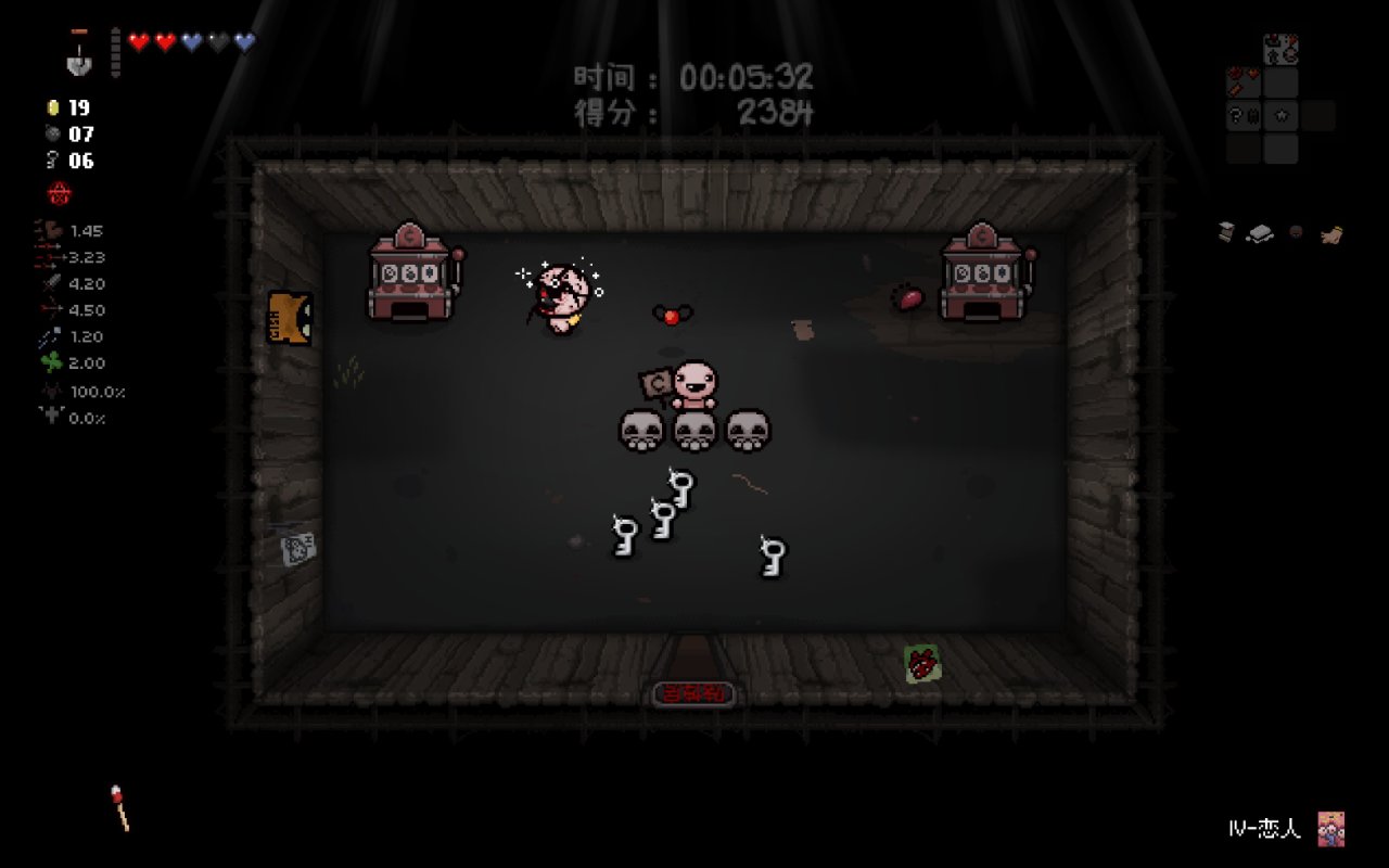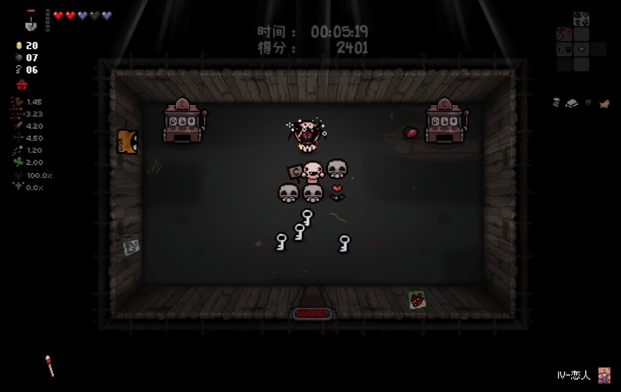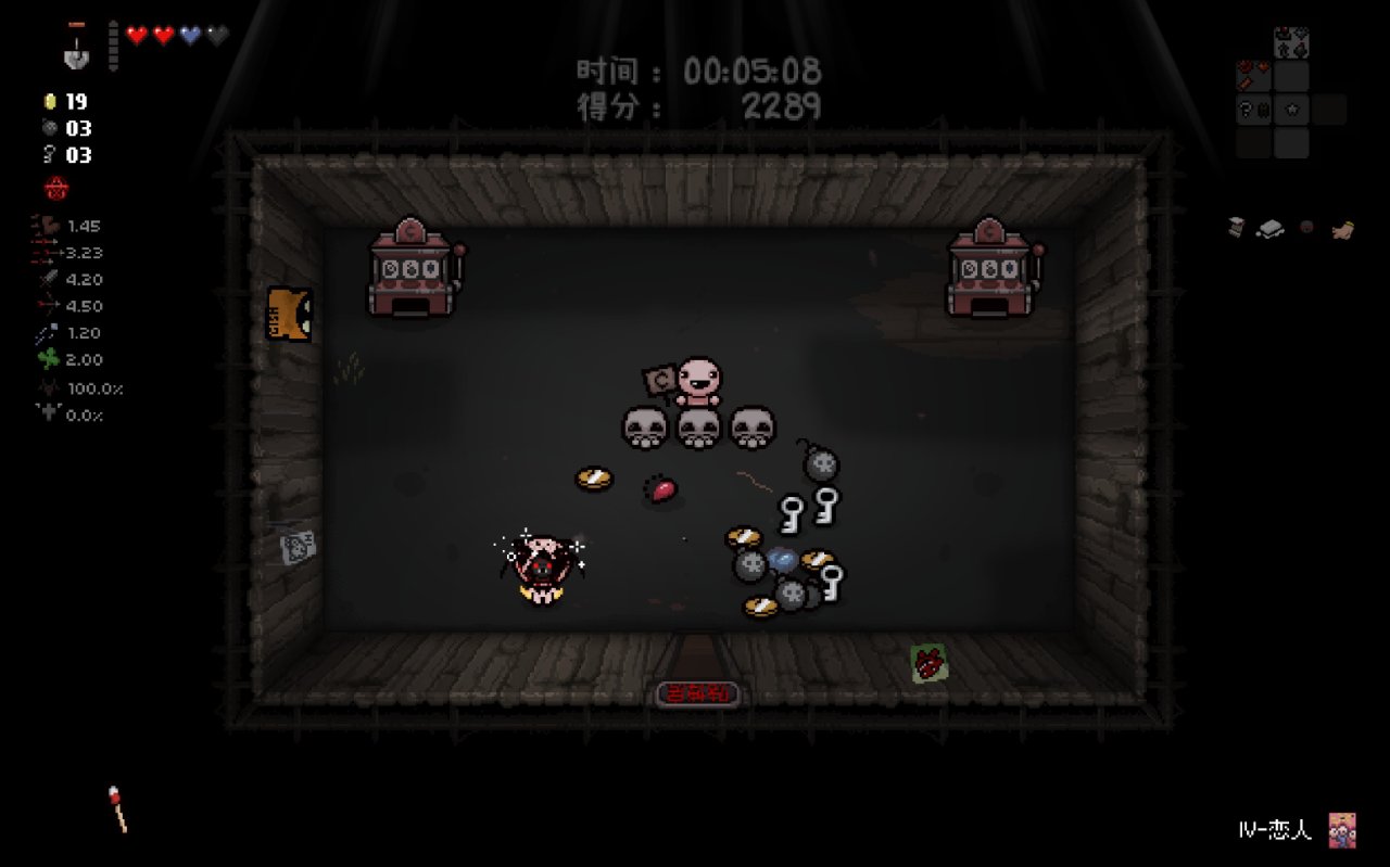 此時我們已經完成了我們能做的所有準備工作,總血量(半顆紅心+一顆魂心)<心之容器數量(2格血上限)、鑰匙數量<2、擁有至少五塊錢。