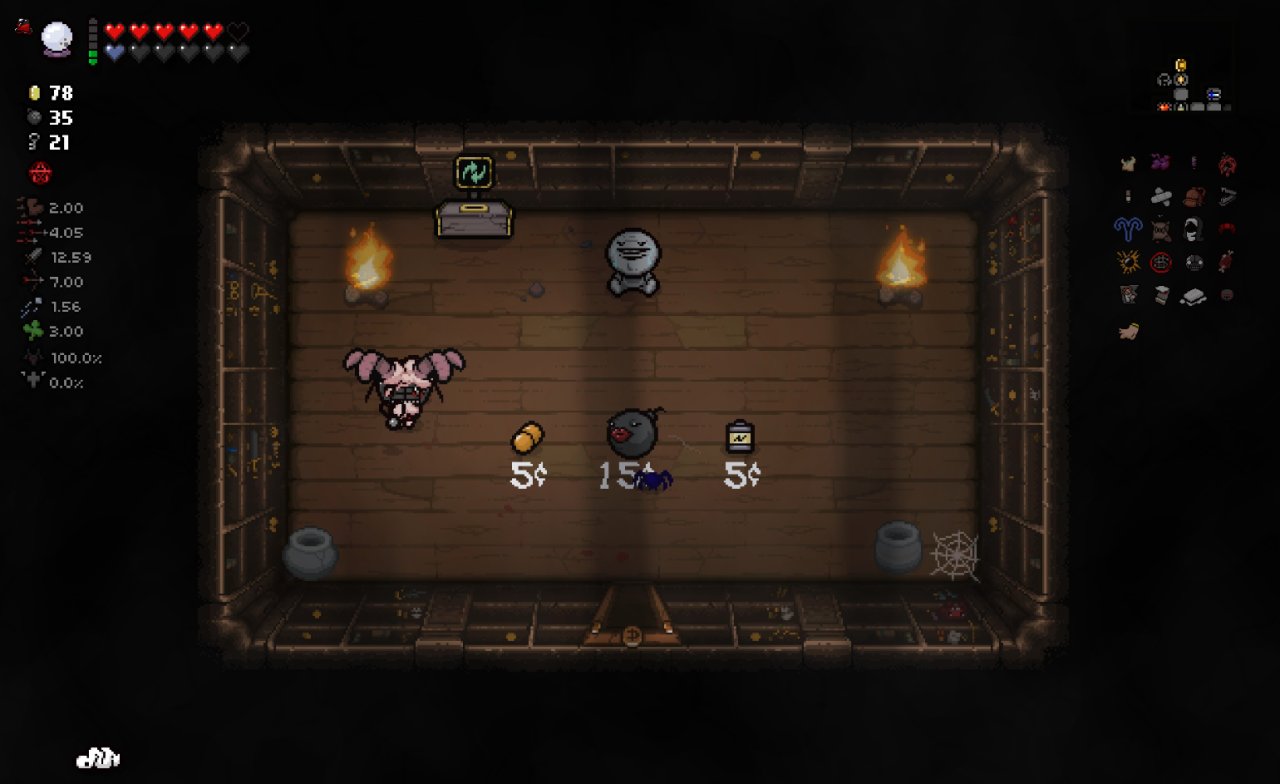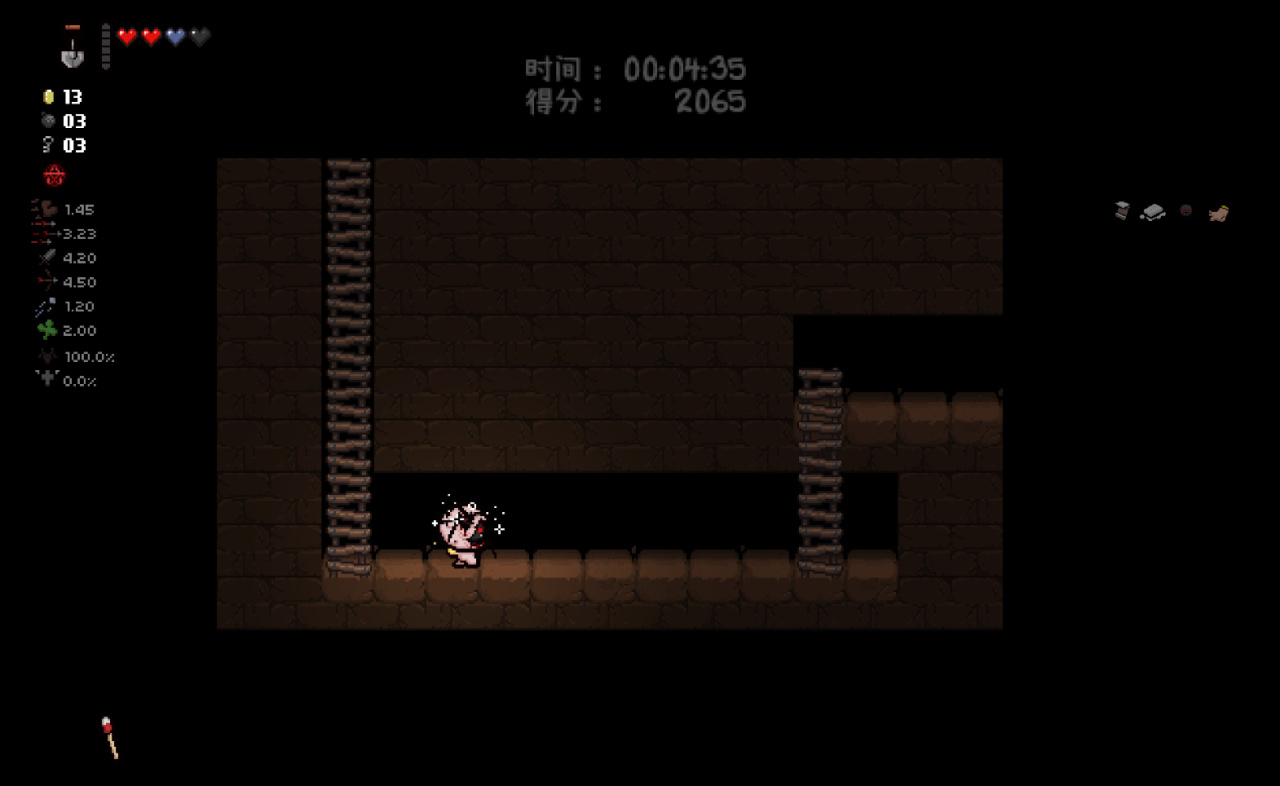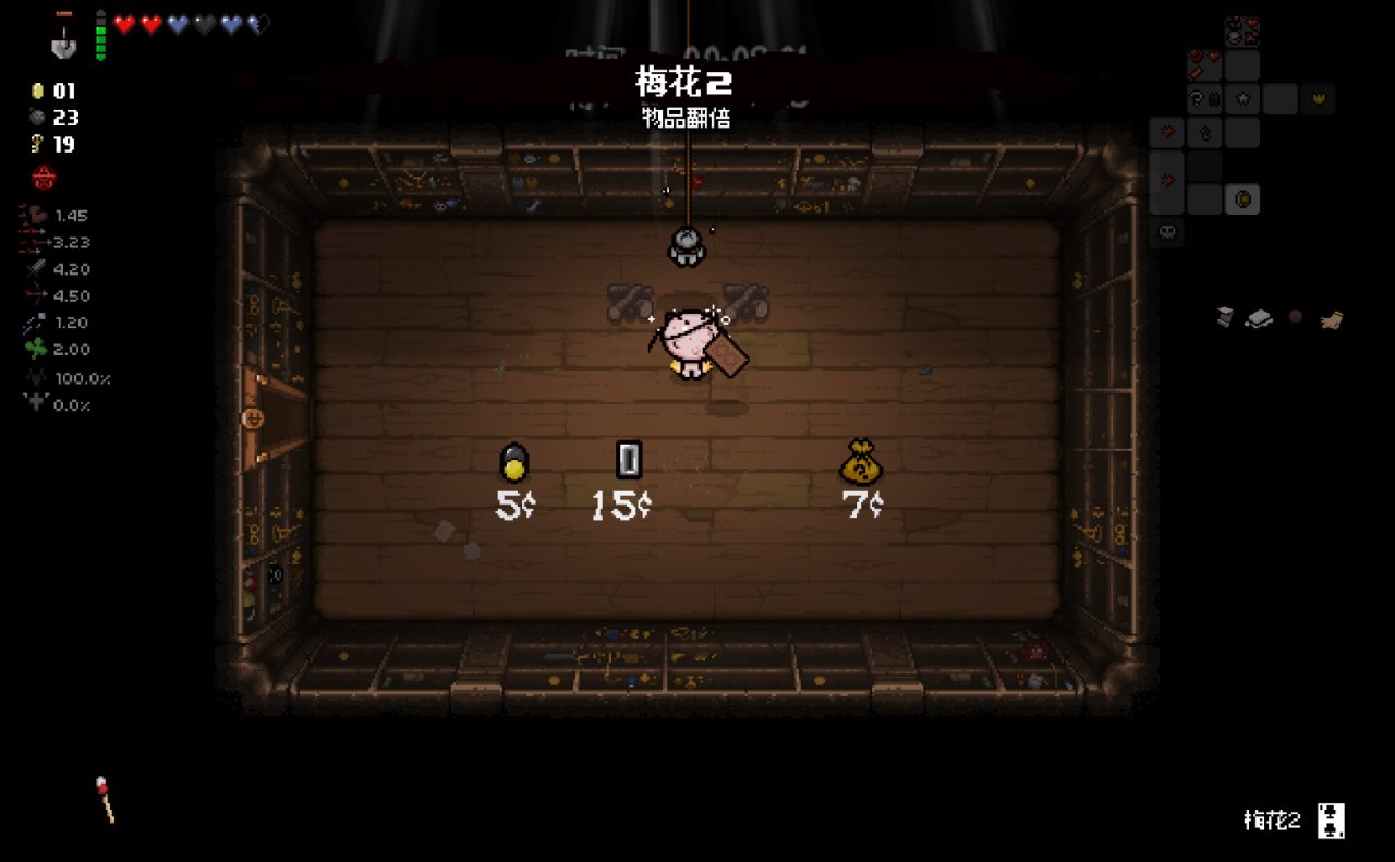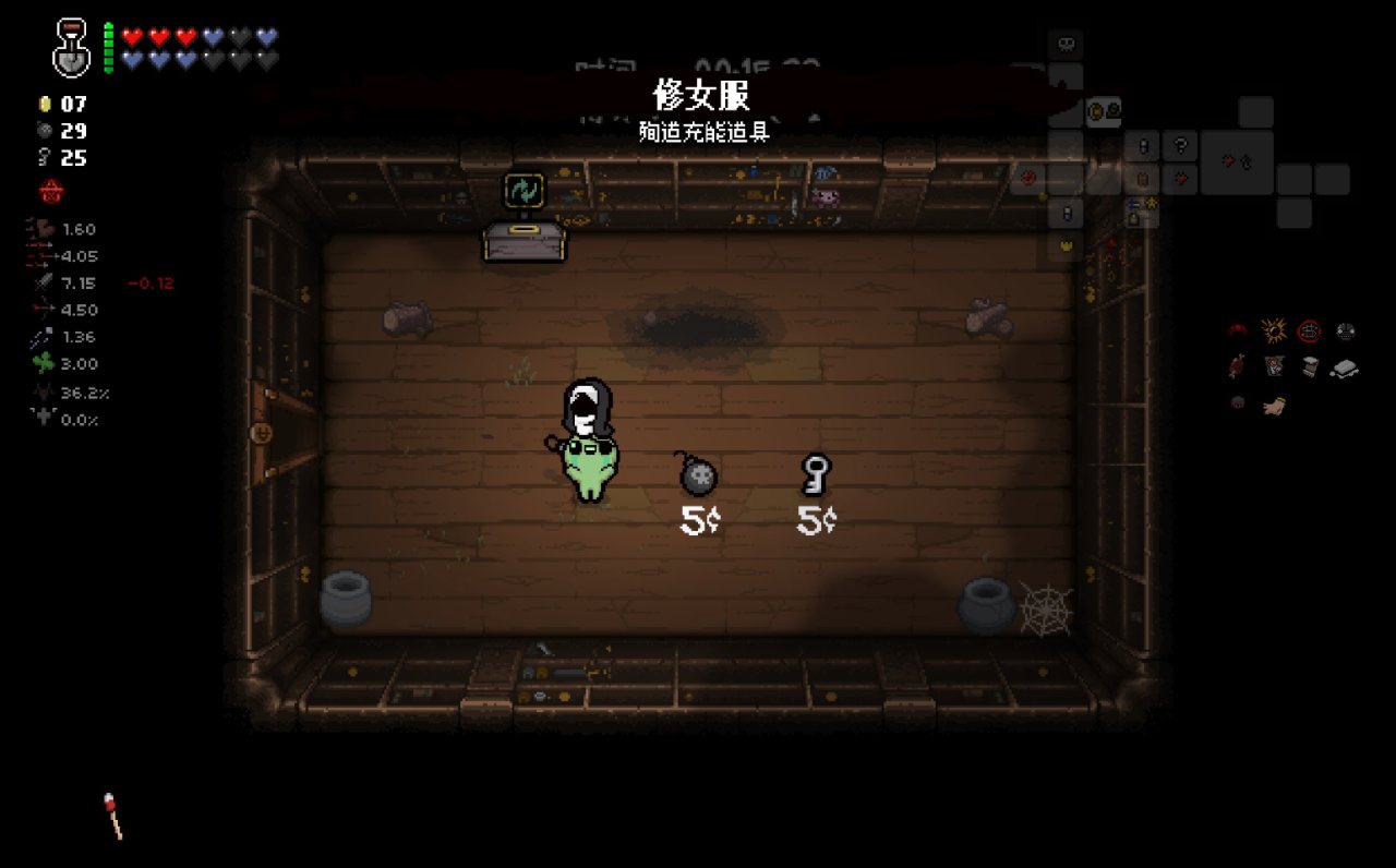此時我們已經完成了我們能做的所有準備工作,總血量(半顆紅心+一顆魂心)<心之容器數量(2格血上限)、鑰匙數量<2、擁有至少五塊錢。