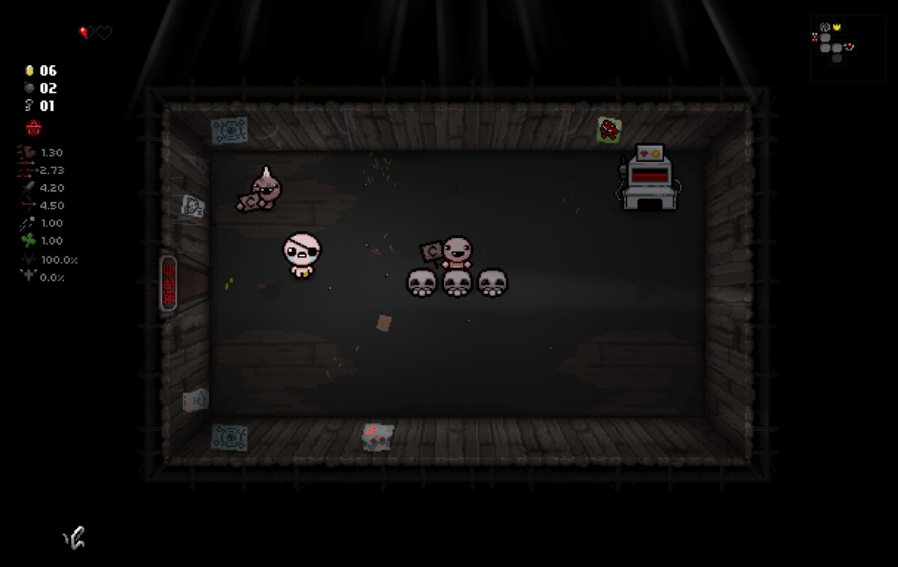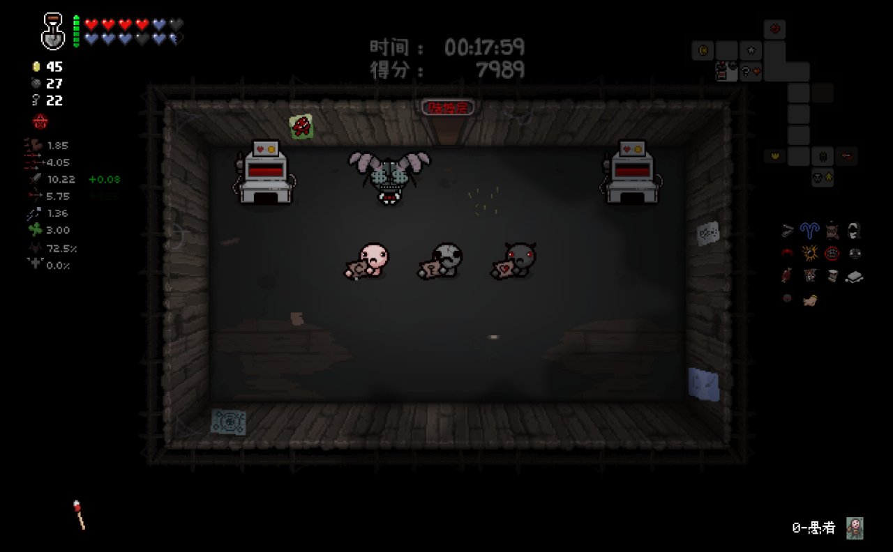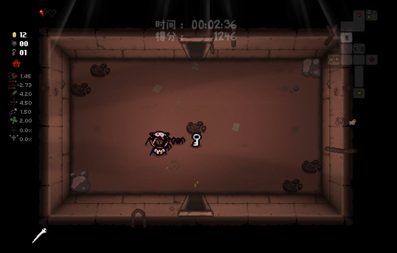 爲了體現出賭博房對該隱的巨大作用,我決定在這一局加一點小難度,我將限制自己只能拿取第一層的寶箱房道具,並且只能交易第二層的惡魔房,不拿一層後的所有寶箱房和不交易二層後的所有惡魔房(模擬萌新保不住開房率),如果局內出現了不是因爲幸運腳而獲得的巨大優勢,我也會故意無視。以此來體現這個角色的單道具運營上限。