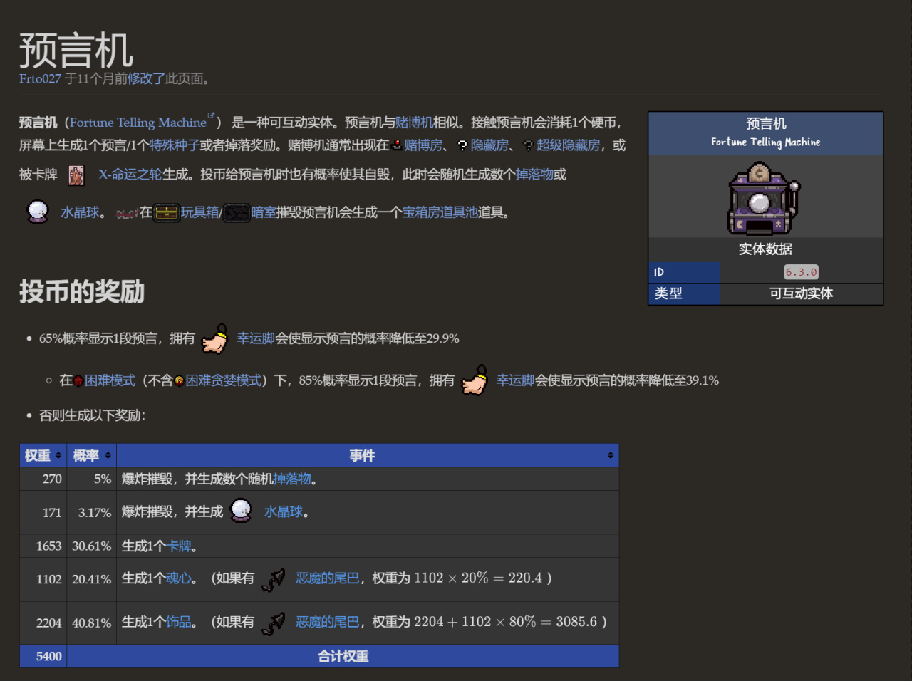 預言機是一個只要能出獎勵,就能夠獲得很高收益的機器(可以出卡牌,飾品,魂心),而在沒有幸運腳的情況下,預言機生成獎勵的概率只有15%(困難模式),而在擁有幸運腳後,預言機生成獎勵的概率可以高達60.9%!但是作者依然推薦在前期遇到預言機時,儘量在有25塊錢左右,或25塊錢以上的時候再去玩預言機
