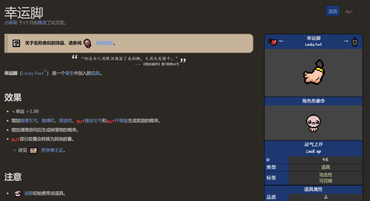 由於幸運腳可以提高清理房間後的資源掉落率,所以該隱對比其它角色更容易遇到箱子之類的豐厚掉落物