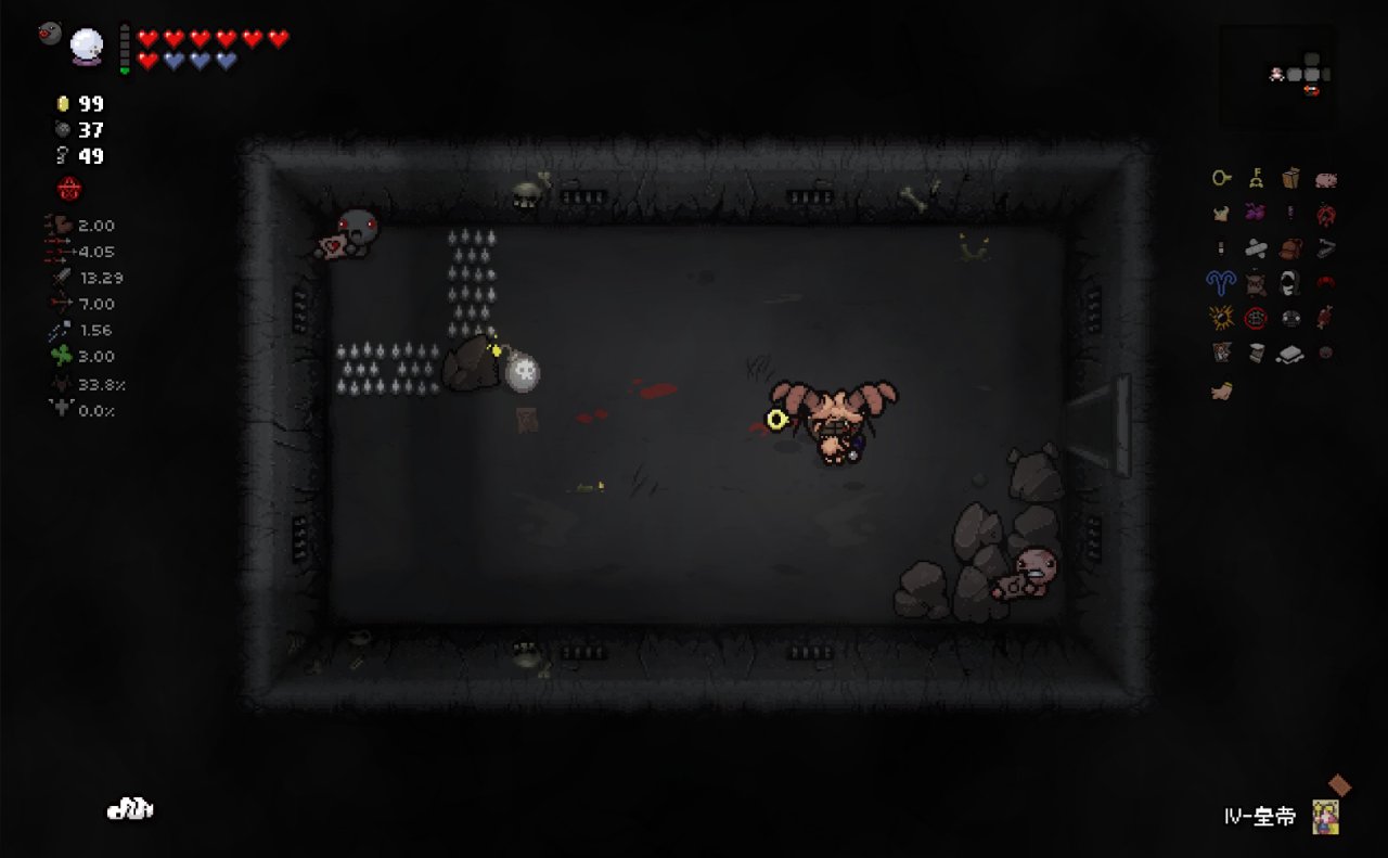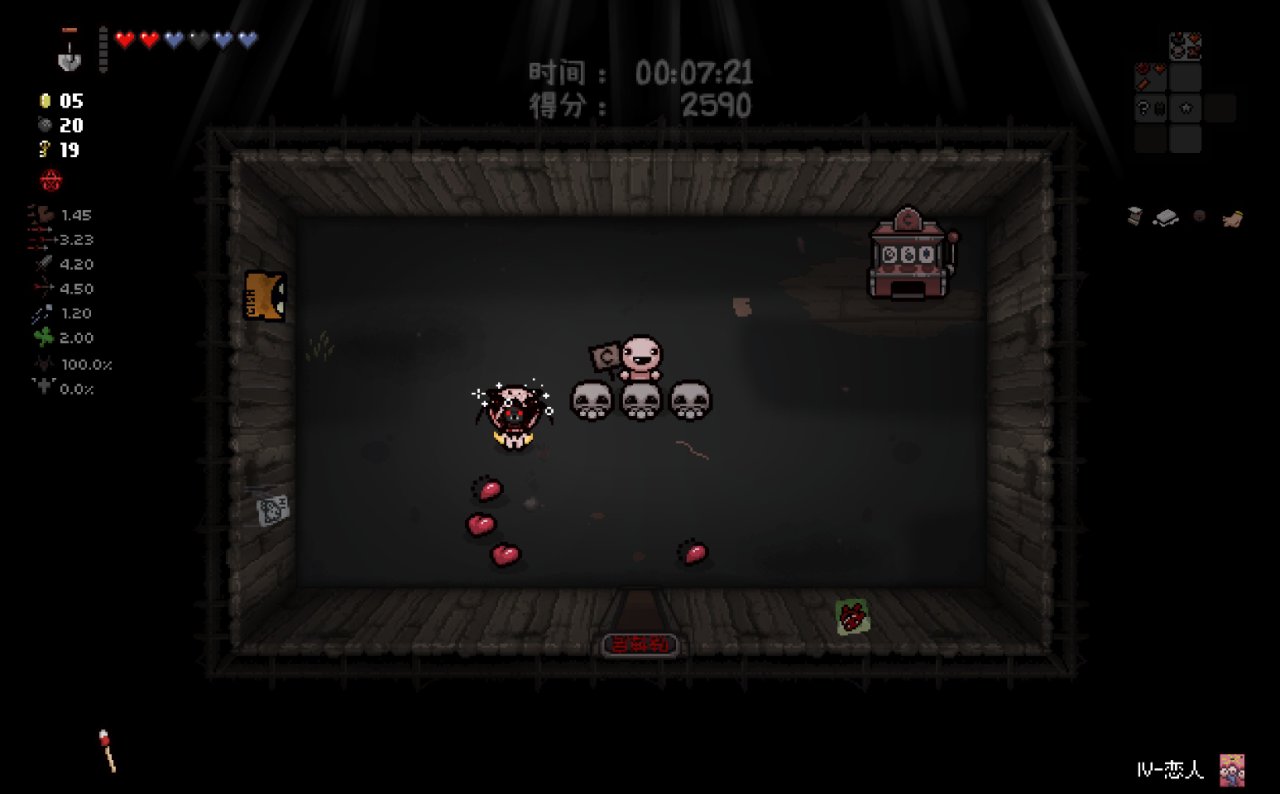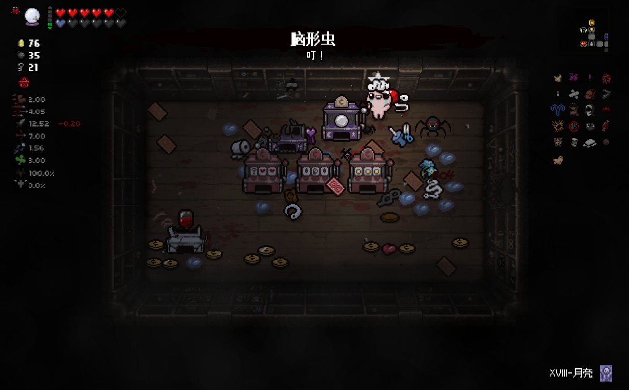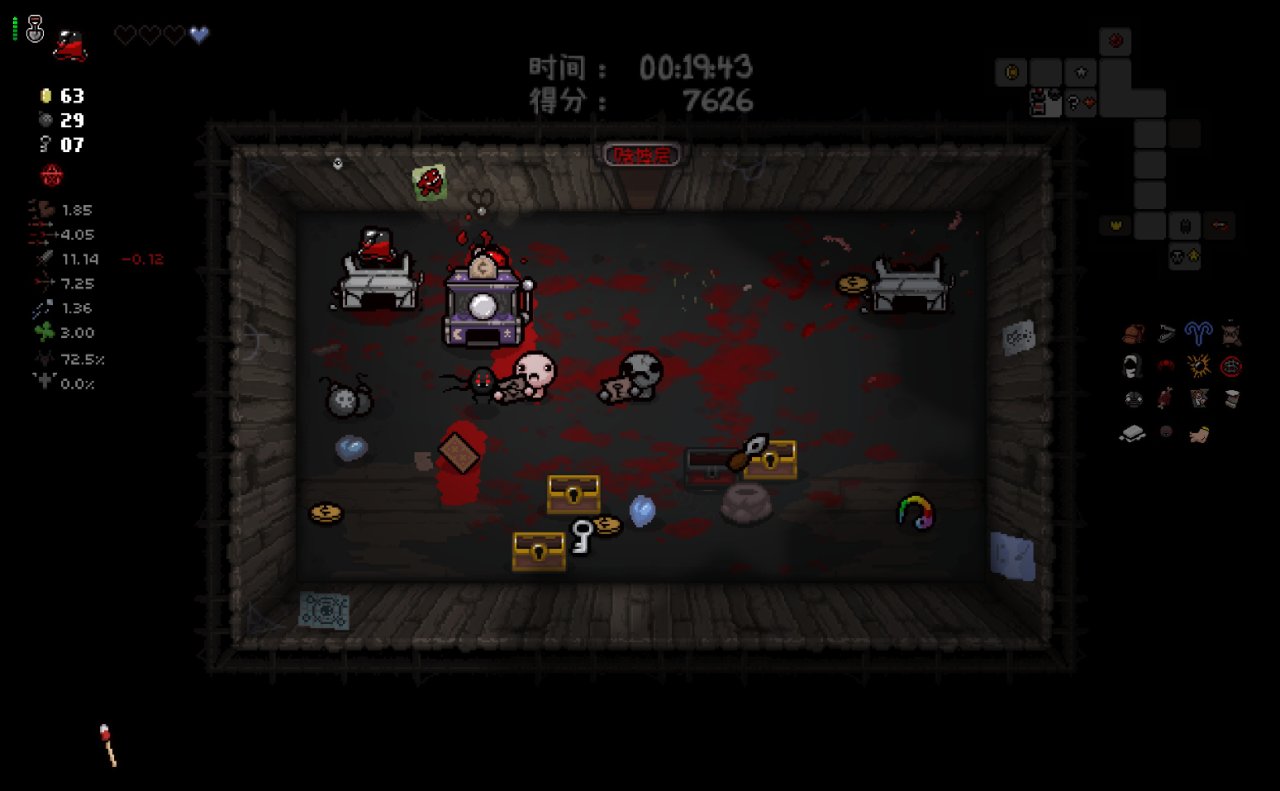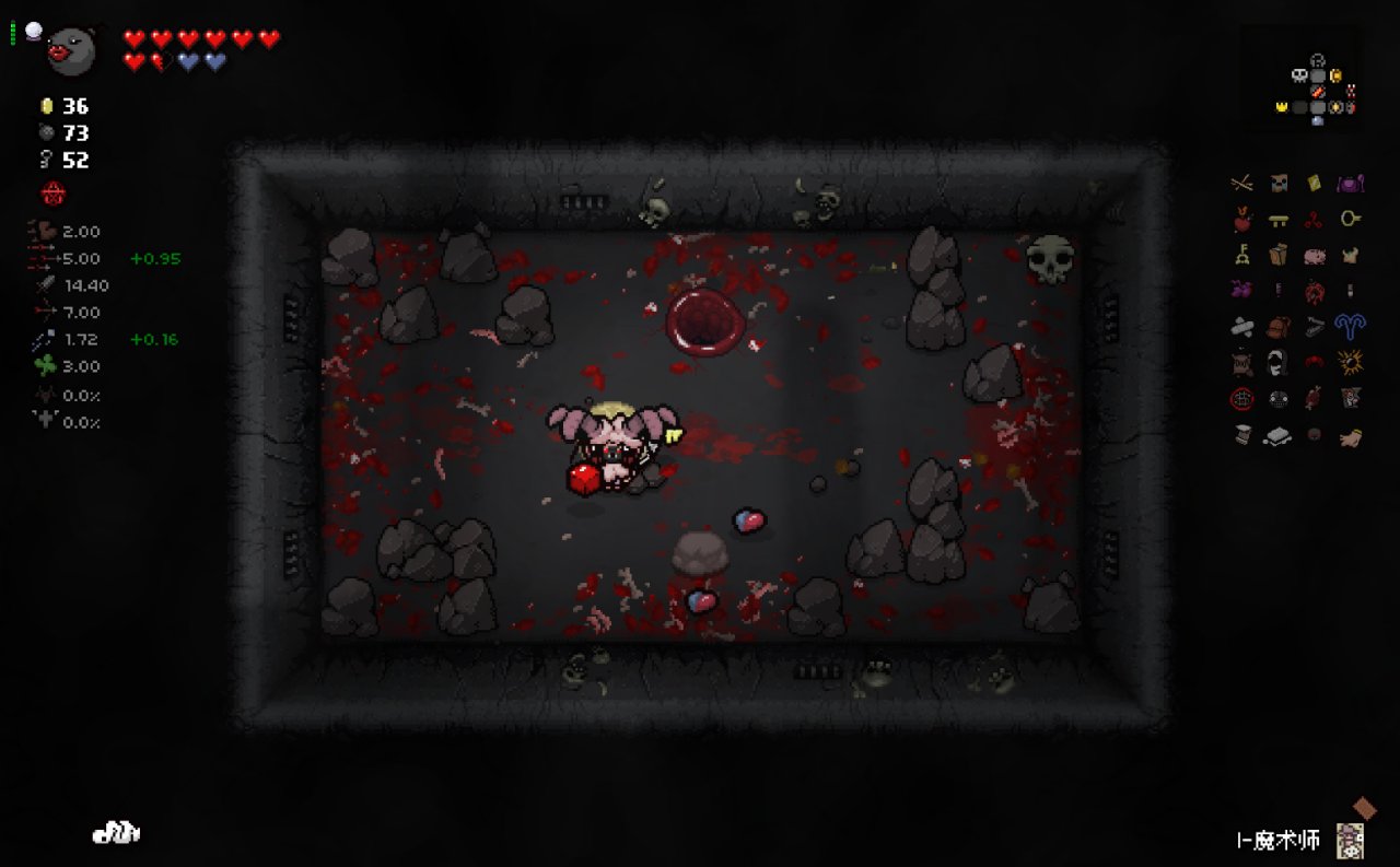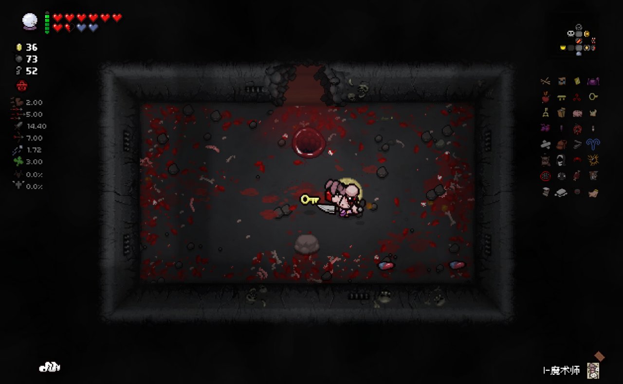 這兩個道具都十分符合該隱的成長需求,該隱不僅可以依靠自身能力獲得許多硬幣,同時自身自帶的1點幸運值和喫藥可能獲得的幸運值也可以大大提高獸性面具掉落魂心的概率,根據本期我給自己加的限制,我們本局只能換這兩個惡魔房道具了。