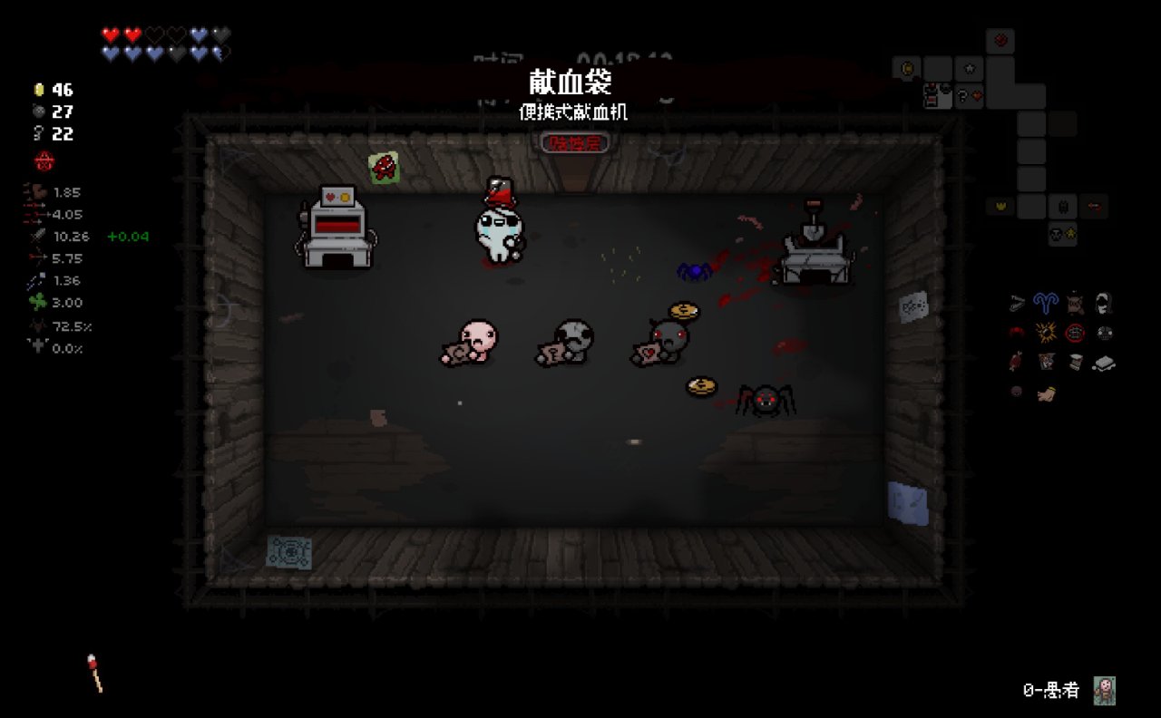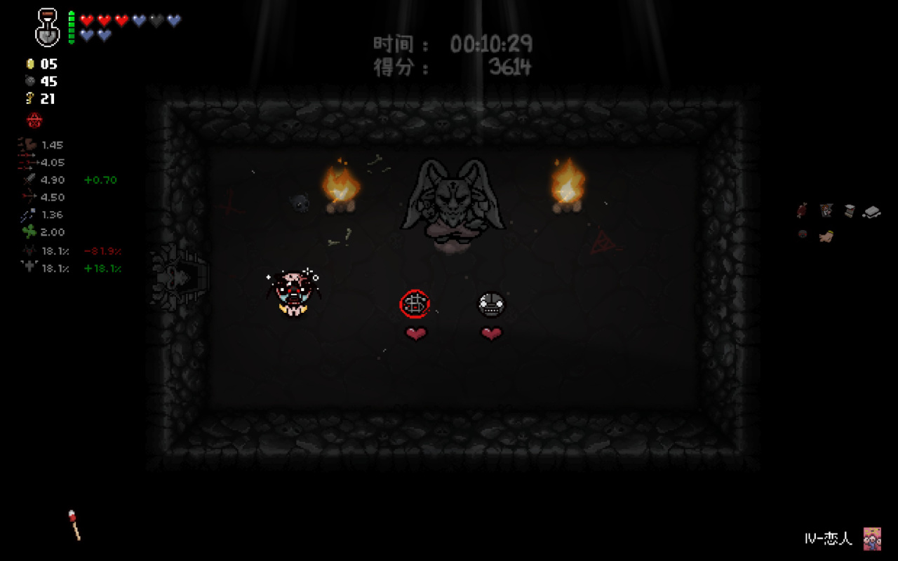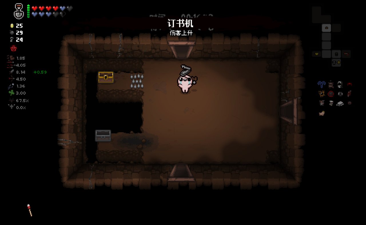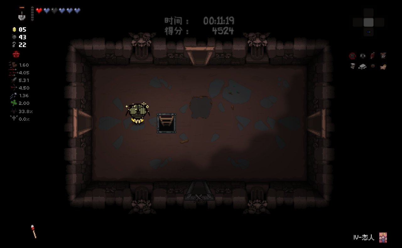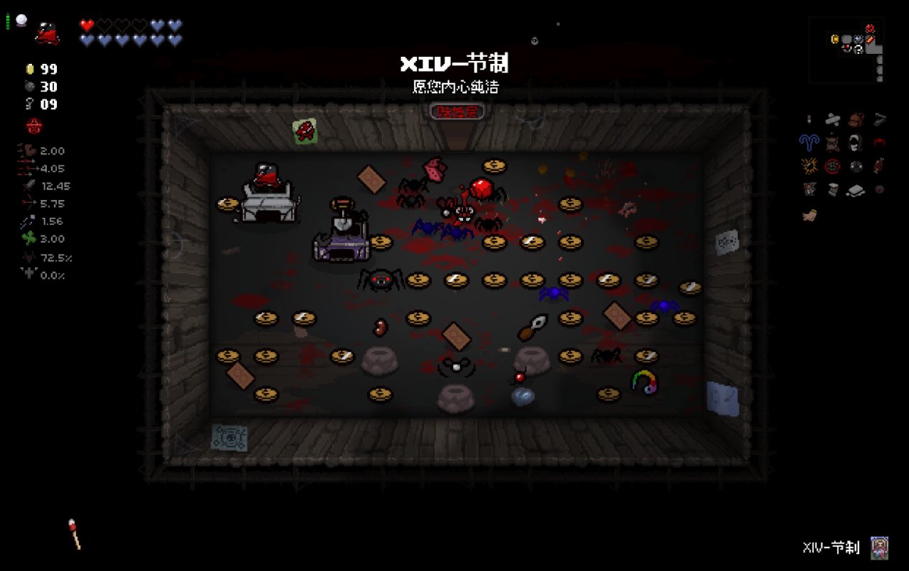這兩個道具都十分符合該隱的成長需求,該隱不僅可以依靠自身能力獲得許多硬幣,同時自身自帶的1點幸運值和喫藥可能獲得的幸運值也可以大大提高獸性面具掉落魂心的概率,根據本期我給自己加的限制,我們本局只能換這兩個惡魔房道具了。