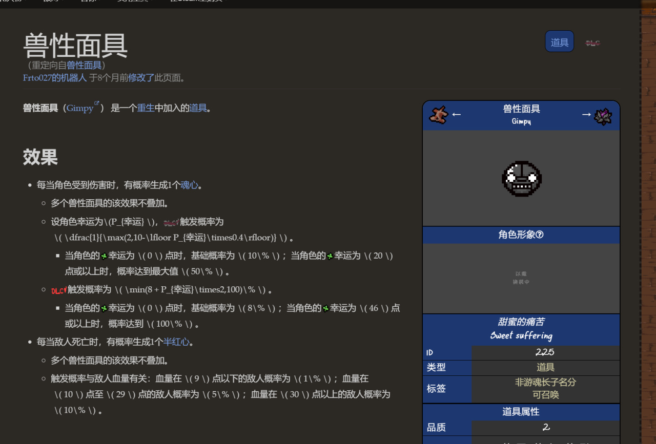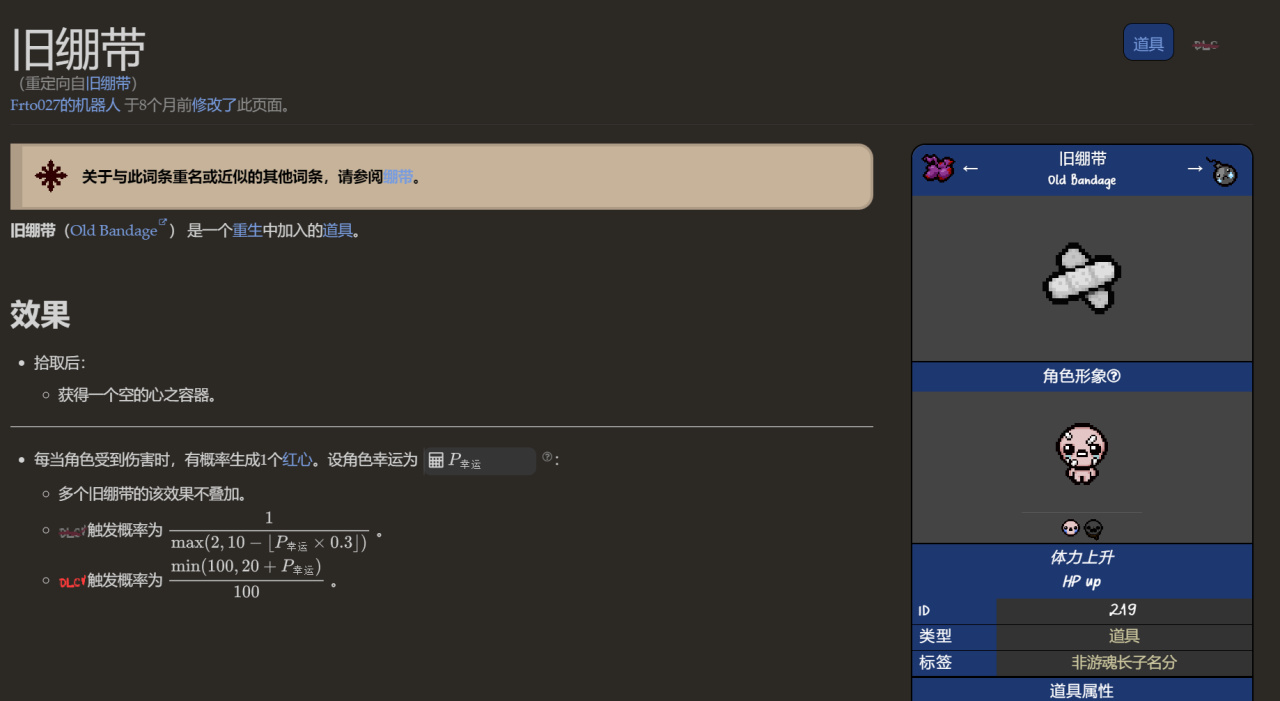 道具效果:受傷時有概率掉落一顆紅心(概率與幸運有關)