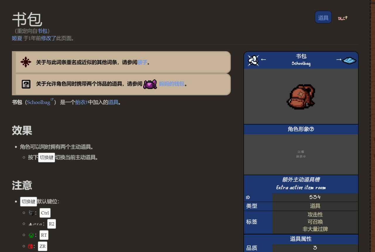 獲得書包後,可以同時攜帶兩個主動道具(主動道具按ctrl切換)