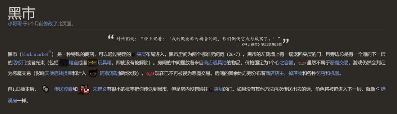黑市的通道一般只會通過夾層概率生成,一般會擺放許多商店道具池的道具供玩家購買,左邊也會生成一個通往下層的暗門。玩家需要支付血上限纔可以購買黑市的道具