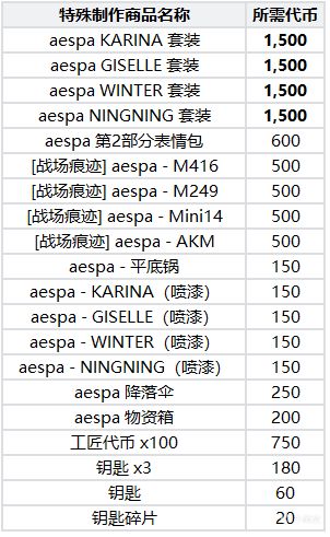 工坊中添加了可進行特殊製作的aespa套裝,武器皮膚,表情包,噴漆等道具。