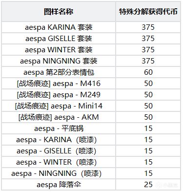 通過特殊分解aespa典藏箱中獲得的圖樣,可獲得aespa代幣。