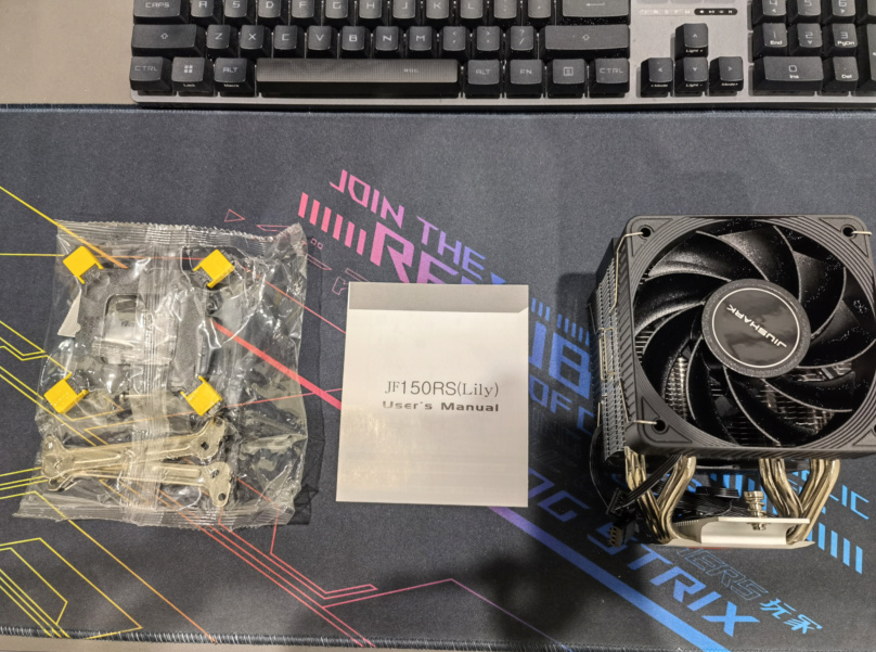 受到AMP的邀请,测试了一款前几天出现在推文里的新风冷产品:四热管,单塔,双风扇的散热器新品,那就是来自“九鲨”的JF150RS,在某dd平台上的售价为60元。