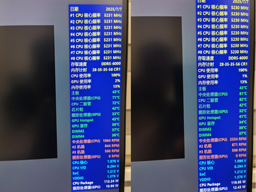 机箱风扇转速固定为前500转,后650—850转,室温开空调24℃浮动1℃