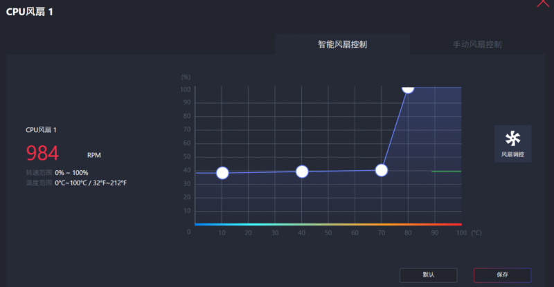 CPU采用了全核负压30,PBO+0的设置方案,散热器风扇转速策略统一如下: