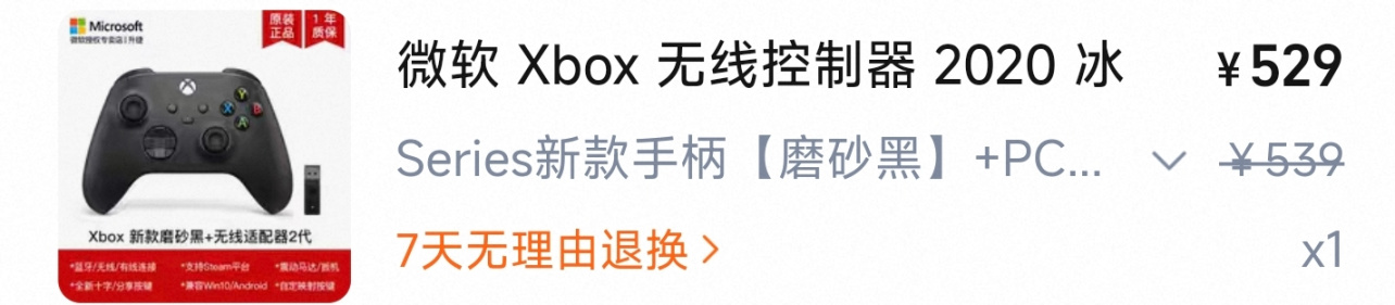 开学第一个月购入手柄,当时迷上地平线4和魂系,攒了一个月生活费购入XBOX手柄一副,并购充电电池一套,共花费640元。当时手柄是真的贵,也没多少能选择的。