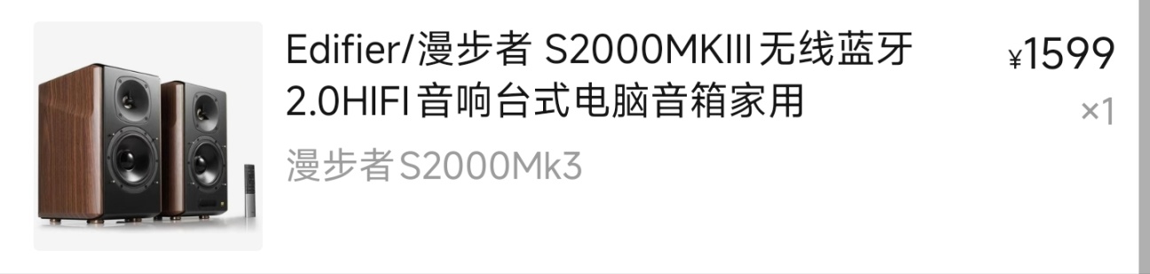 于是购入漫步者S2000kmiii,1599元。音频享受更上一个台阶,和当初XM3给我的震撼一样,气势太足了,弹性十足,声场也更大更舒服,声音就像轻抚你的脸一样,扑面而来。