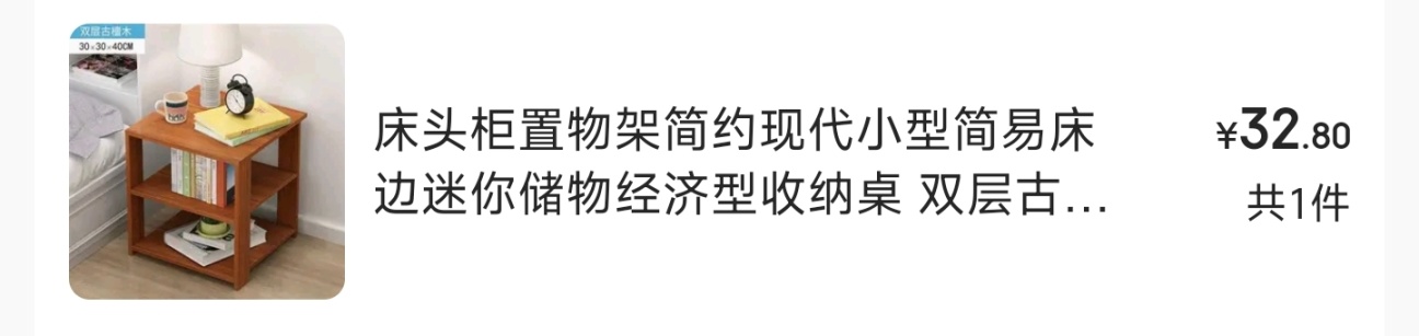 32元,买了个双层小柜,笔记本、电源放上去,底层还能放一些杂七杂八的东西。