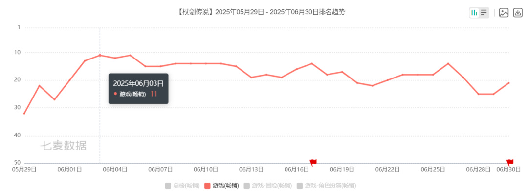 上线首日,《杖剑传说》就登顶中国App Store下载榜,6月初更是成功闯进iOS手游畅销榜TOP11,强劲的市场表现助力雷霆网络本期收入实现环比翻倍增长,创下近一年内的最高营收纪录,跃升至发行商收入榜第26名。