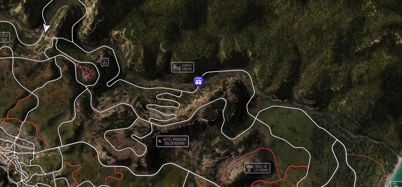 寶箱位置參考上圖,在大河測速區間的右下方,旅館旁邊的盤山公路終點附近。