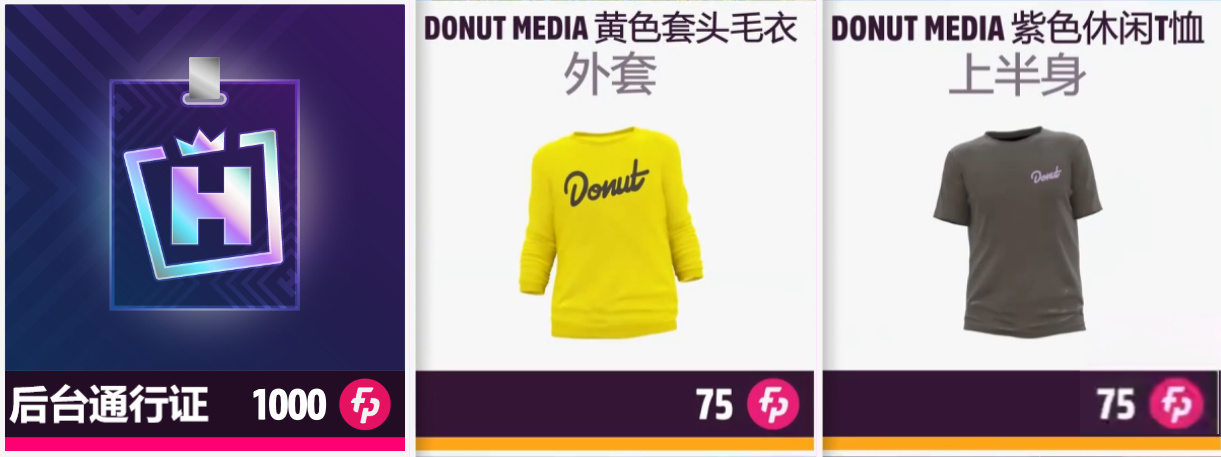 剩餘物品:後臺通行證、DONUT MEDIA 黃色套頭毛衣、DONUT MEDIA 紫色休閒 T 恤