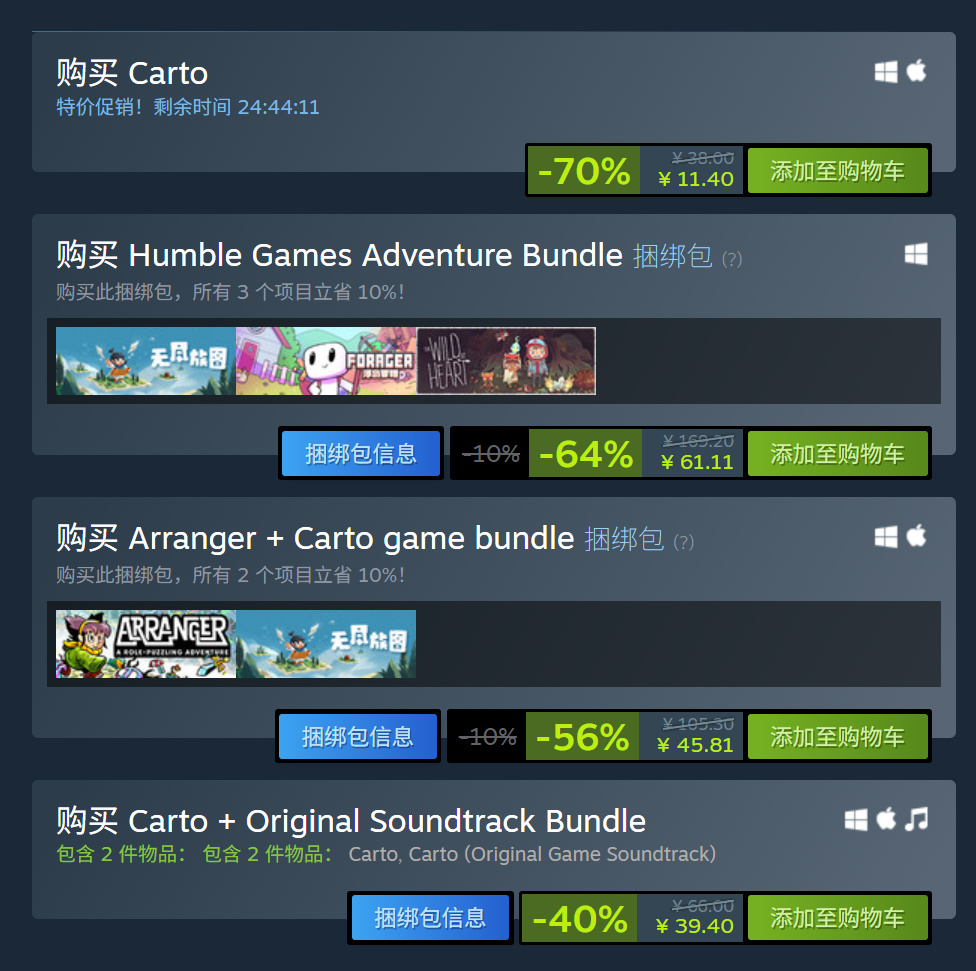 简介:《Carto》源于英文"Cartographer"(制图师),卡朵不慎坠入未知世界。这里蜿蜒曲折,地形丰富。作为制图师卡朵,你将用你自己的神秘力量,操纵地图颠覆世界,将其翻转、拼合。当世界随着你地图的组合而变化的同时,新的道路也展现在你面前。这一路上人均谜语人,你将运用智慧帮助他们的同时完成属于你