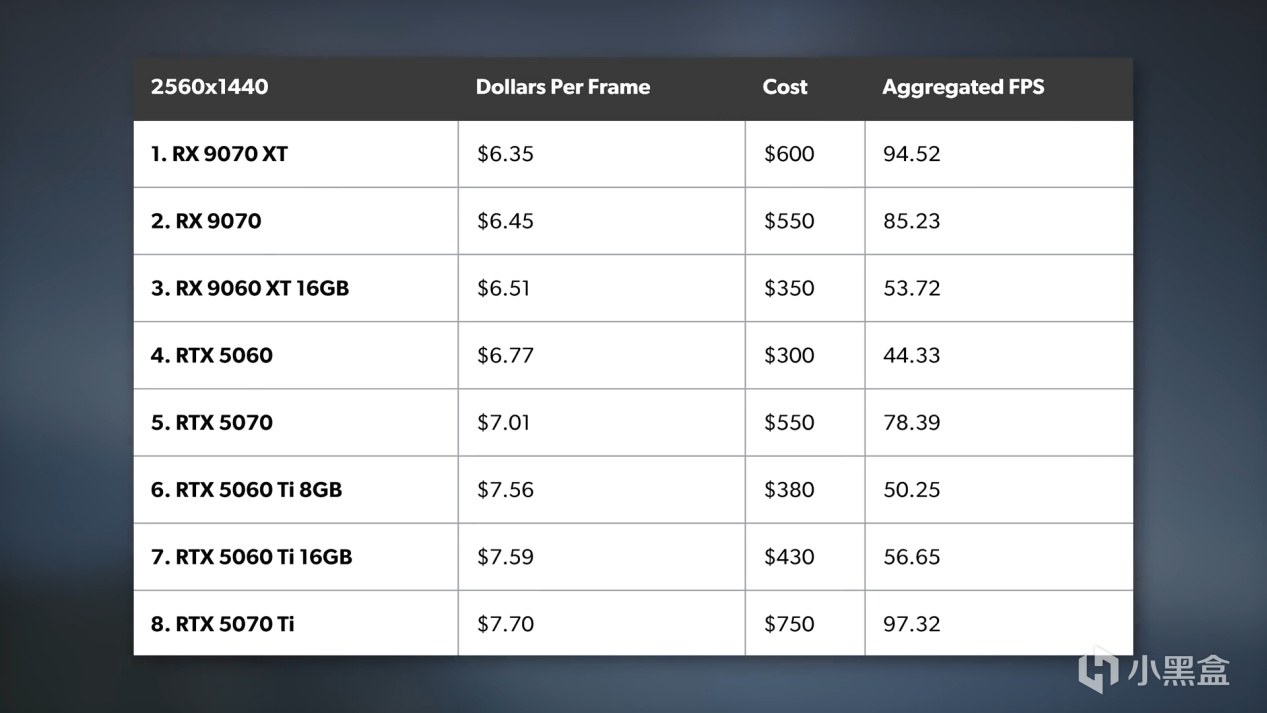 而最终的结论,在DF的量化体系中,9060XT 16G都排在一个非常理想的配置,帧/美元排在可怕的9070系列之后排在第三,而总计帧数53.72略逊于RTX5060Ti 16G,远高于5060和5060Ti 8G一对难兄难弟。