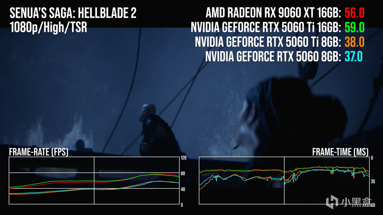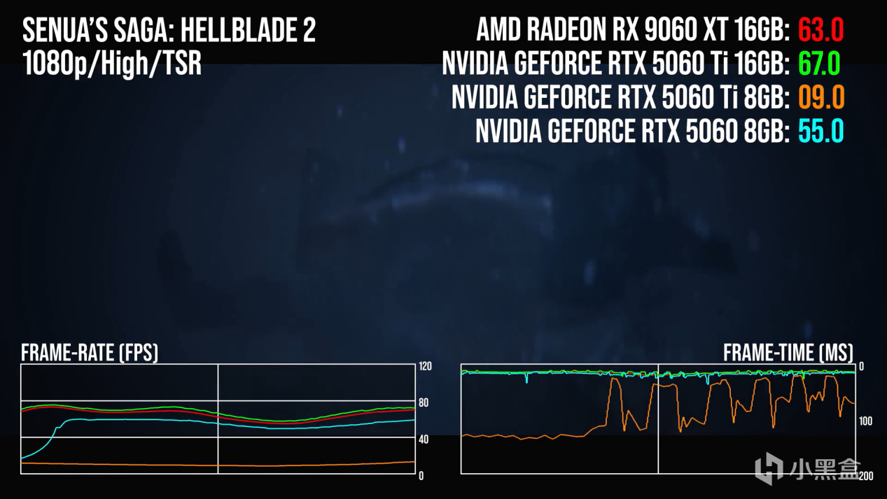 而在他非常偏爱的地狱之刃2:塞纳的传说中,RTX5060Ti 8G直接在FHD就被爆了,直接和RTX5060坐同一桌去了。