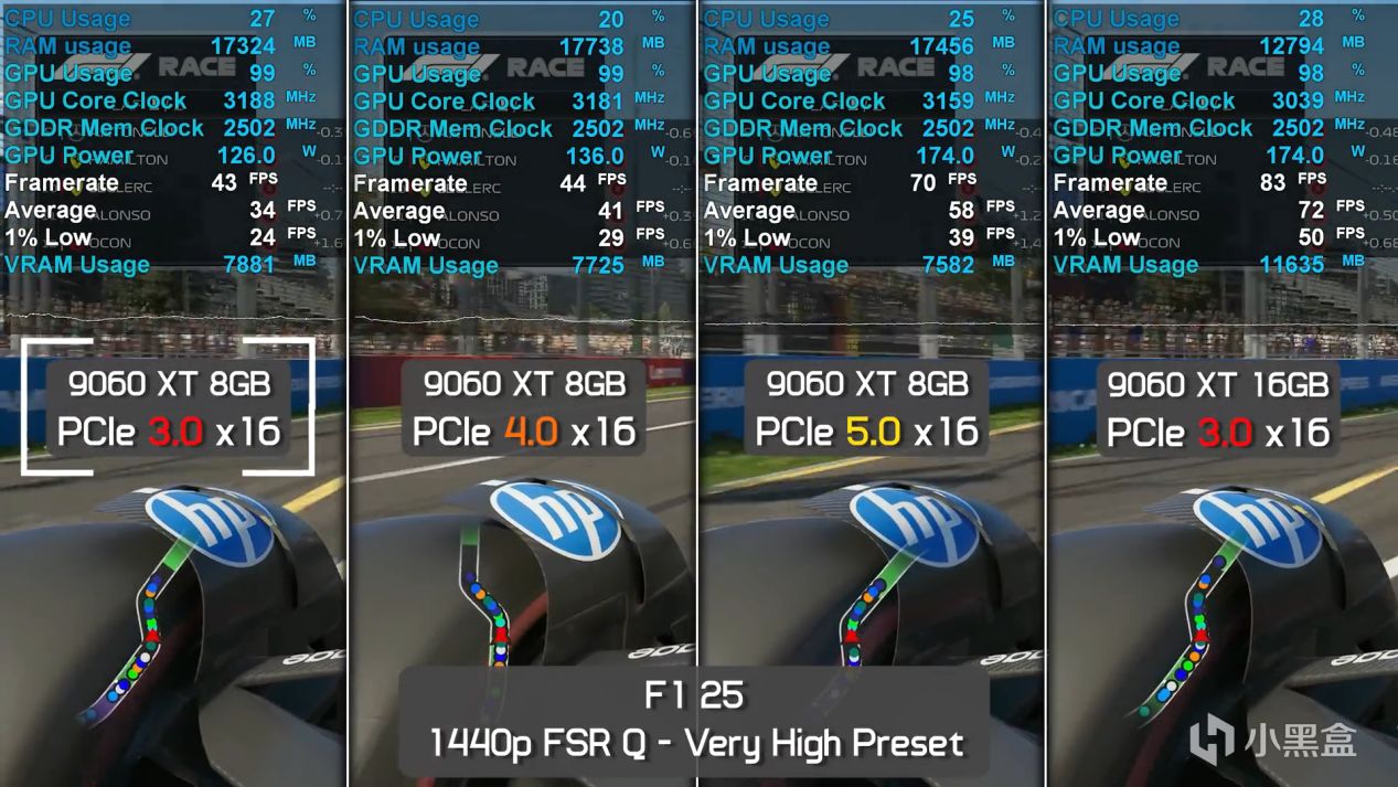 而在我非常喜欢的@Digital Foundry的测试过程当中,他也表达了对RX 9060 XT,PCIe 5.0 x16的肯定,多款游戏的测试中,性能只有很小的损失,