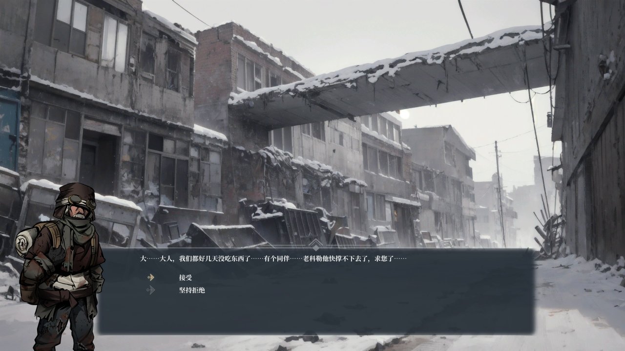 当你面对流民的请求,你愿意送出本就所剩无几的食物物资吗?路过所遇到的随机事件,带来一些道德困境与抉择。