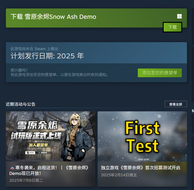 五个月之后,《雪原余烬》打赢了复活赛。不仅完成场景和美术资源重制,还上线免费试玩demo。历经这次事件之后,也让他们重新审视游戏玩法。