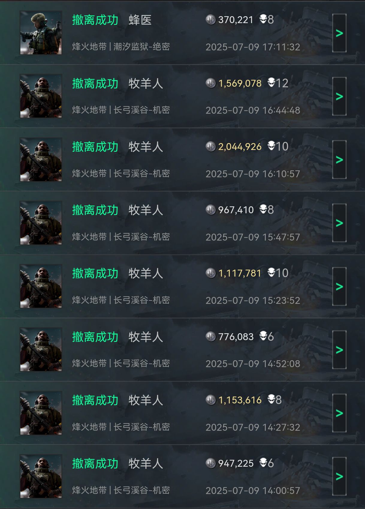 當時截了那隊磚的時候,他們剛好買完別人的命朝我們過來,我們打起來的時候,車站已經沒多少人了,把他們踢了之後去車站剛好剩兩個人,我們打了暗號,所以說他們也沒跑,給了他們3個小紅(加了金彈)賣了三條命(他們本來是不想賣的,估計看我們是磚隊也沒辦法)