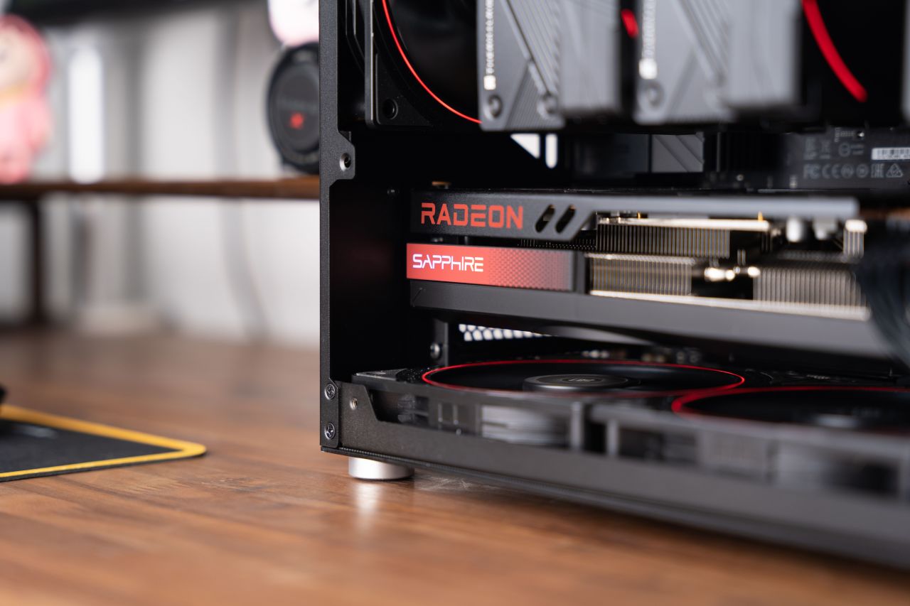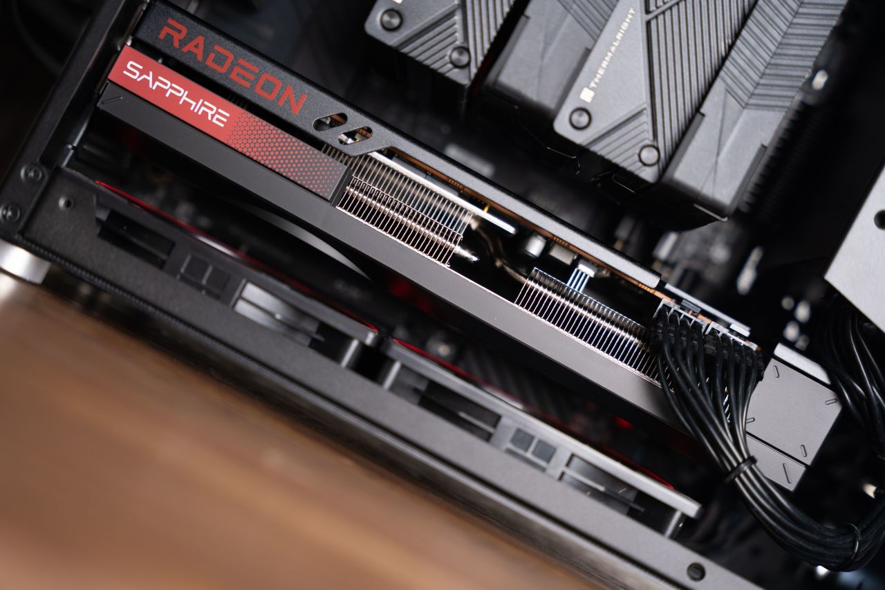蓝宝石的这块7800XT白金版在颜值方面采用黑加红搭配,整体颜值上与七彩虹有类似风格,尾部用红色LOGO点缀;作为4K的入门卡,至今依旧可以作为性价比之选