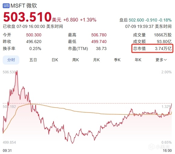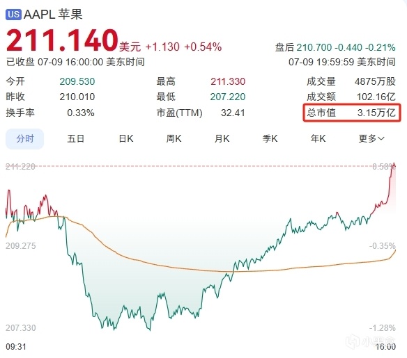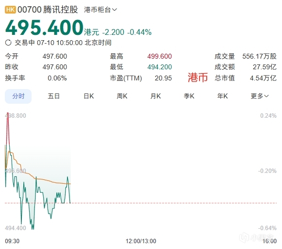 腾讯控股(00700.HK)港股总市值 ≈ 4.55万亿港元
