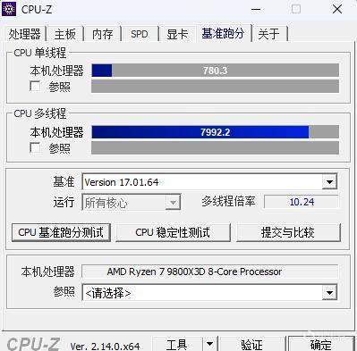 ▼簡單跑個CPU-Z的性能測試,單核得分780.3、多核得分7992.2,還不錯。
