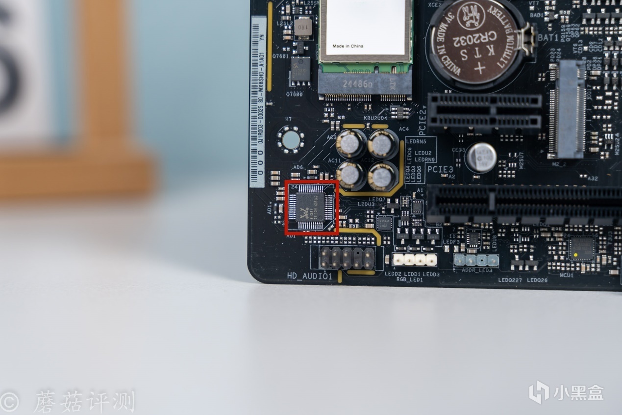 ▼主板左下角是熟悉的小螃蟹的聲卡芯片,絲印ALC897,旁邊有幾顆音頻電容。