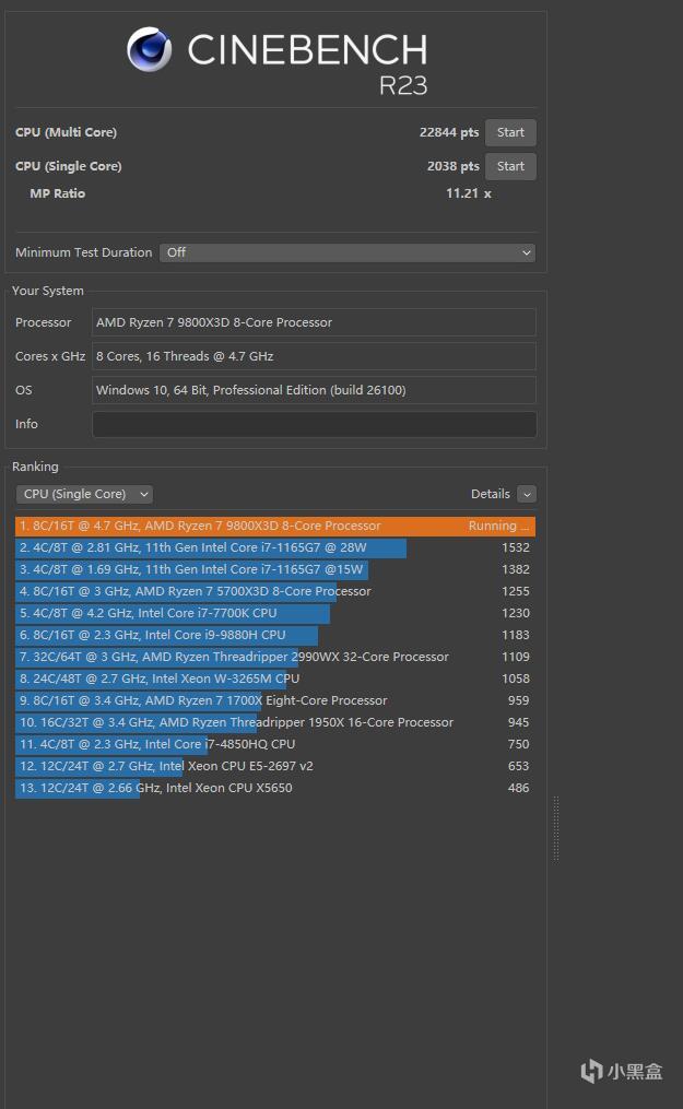 ▼跑個CineBench R23,單線程得分2038,多線程得分22844,分數都很高。