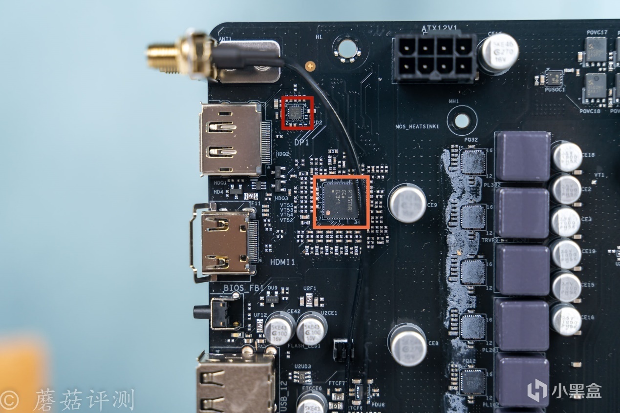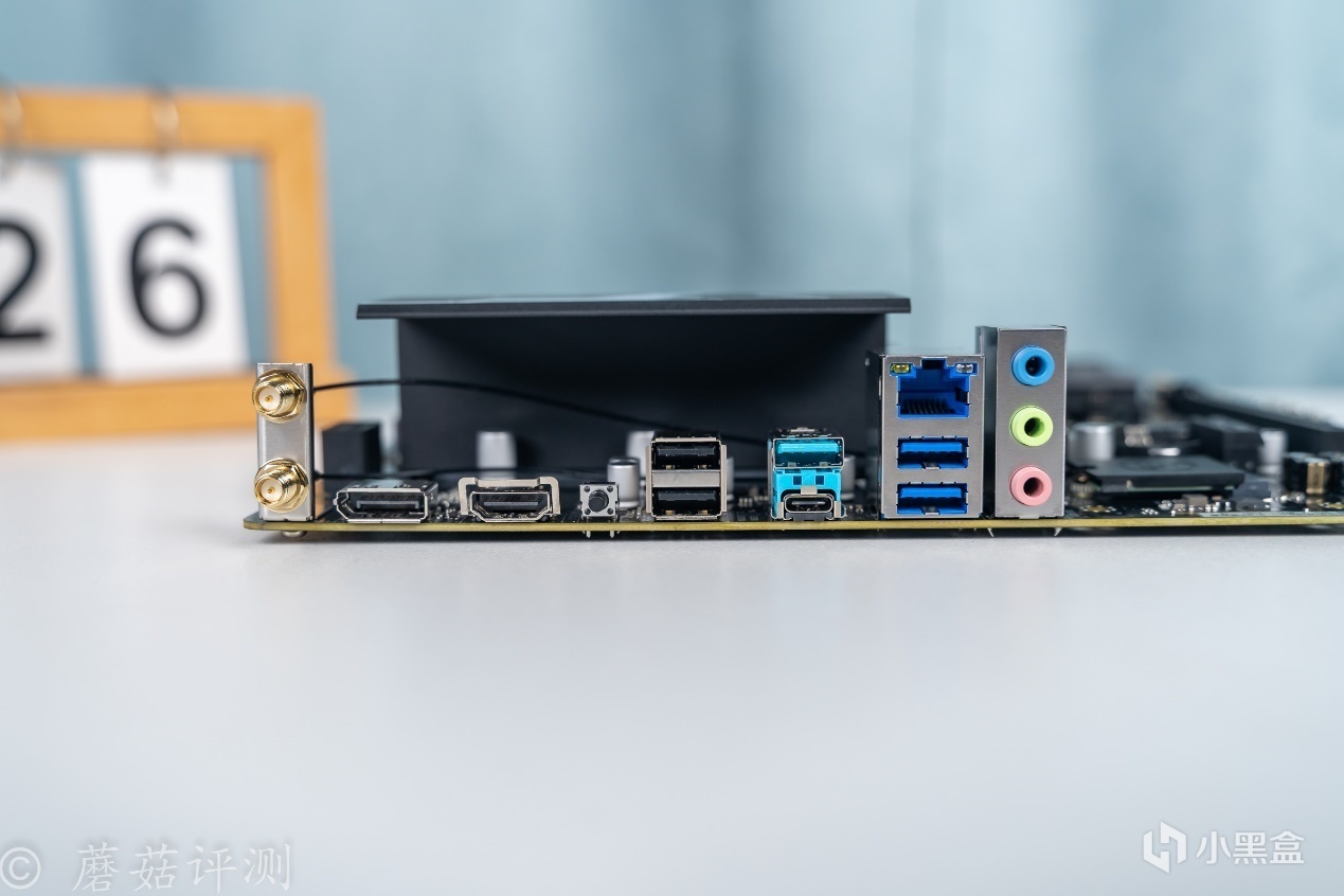 ▼主板後部IO接口方面,從左到右依次是WIFI天線插座、DP接口、HDMI接口、BIOS刷寫按鈕、USB 2.0接口2個、USB 3.2 Gne1 Type-C、USB 3.2 Gen1 Type-A接口3個、2.5G有線Lan口和3個音頻接口。