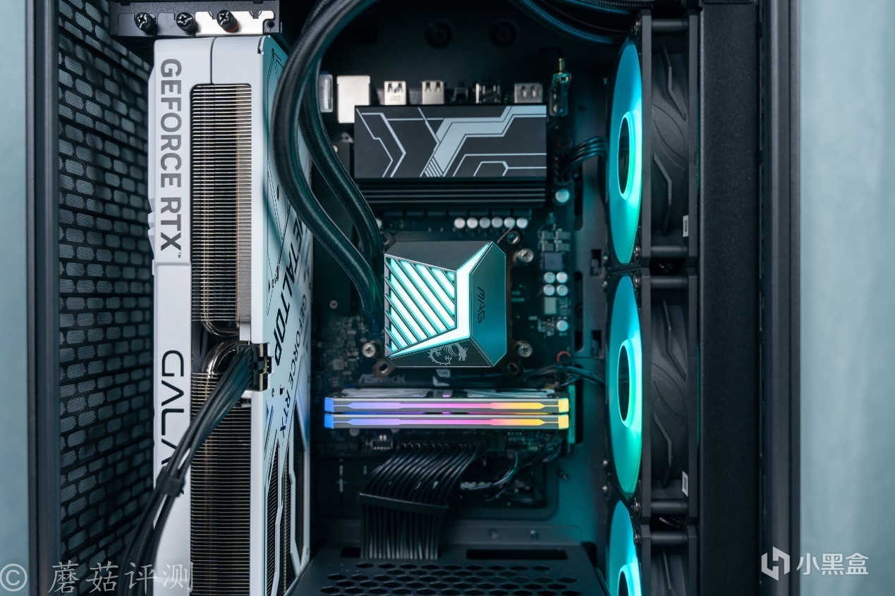 ▼主板輕鬆固定到機箱內部,水冷用的是微星的A15 360一體式水冷。