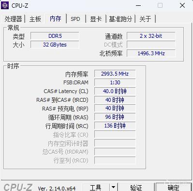 ▼內存開啓EXPO,頻率可以輕鬆穩定在6000MHz,時序40-40-40-96。