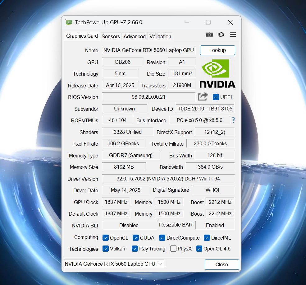 NVDIA RTX 5060 笔记本 GPU