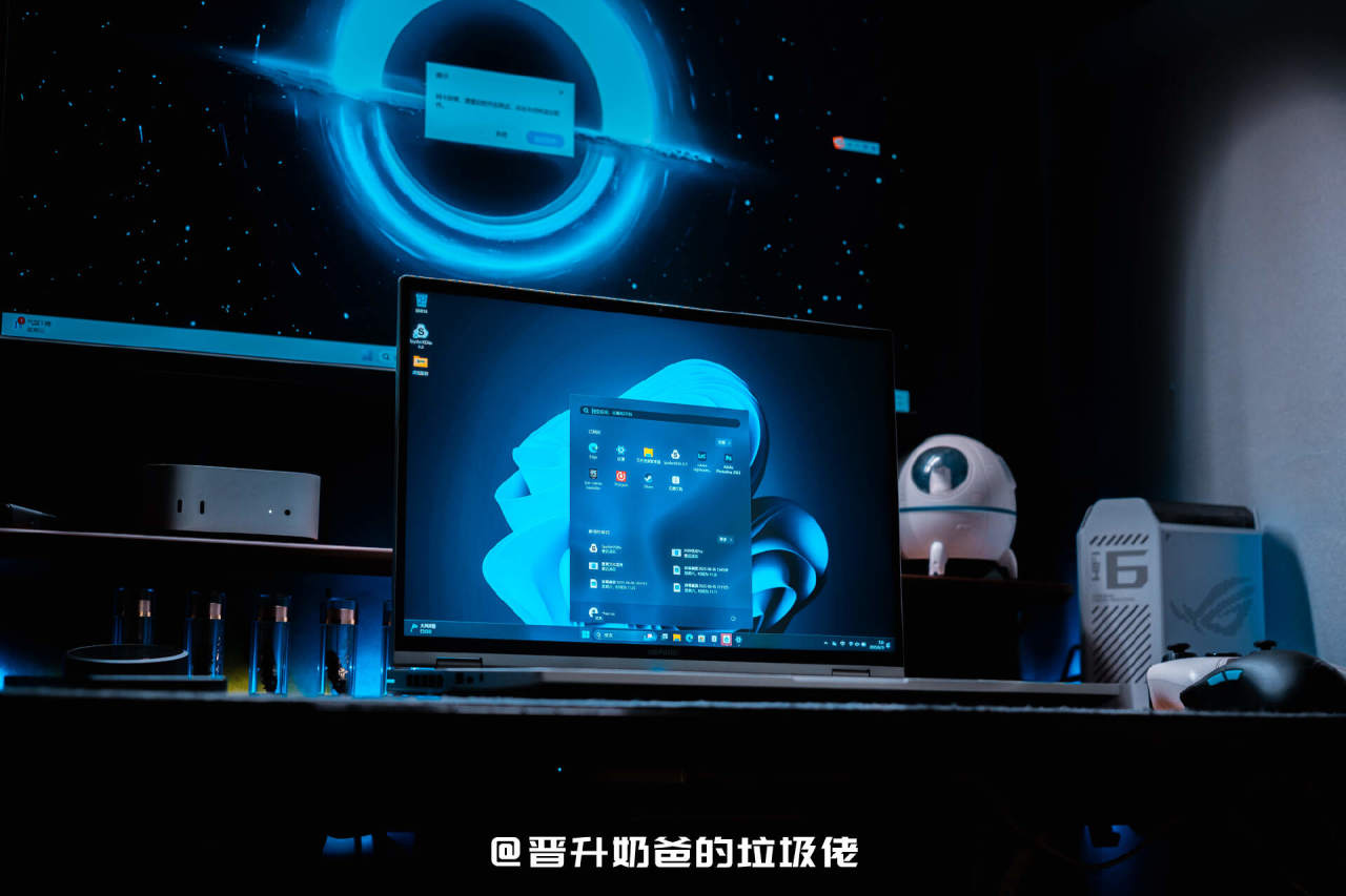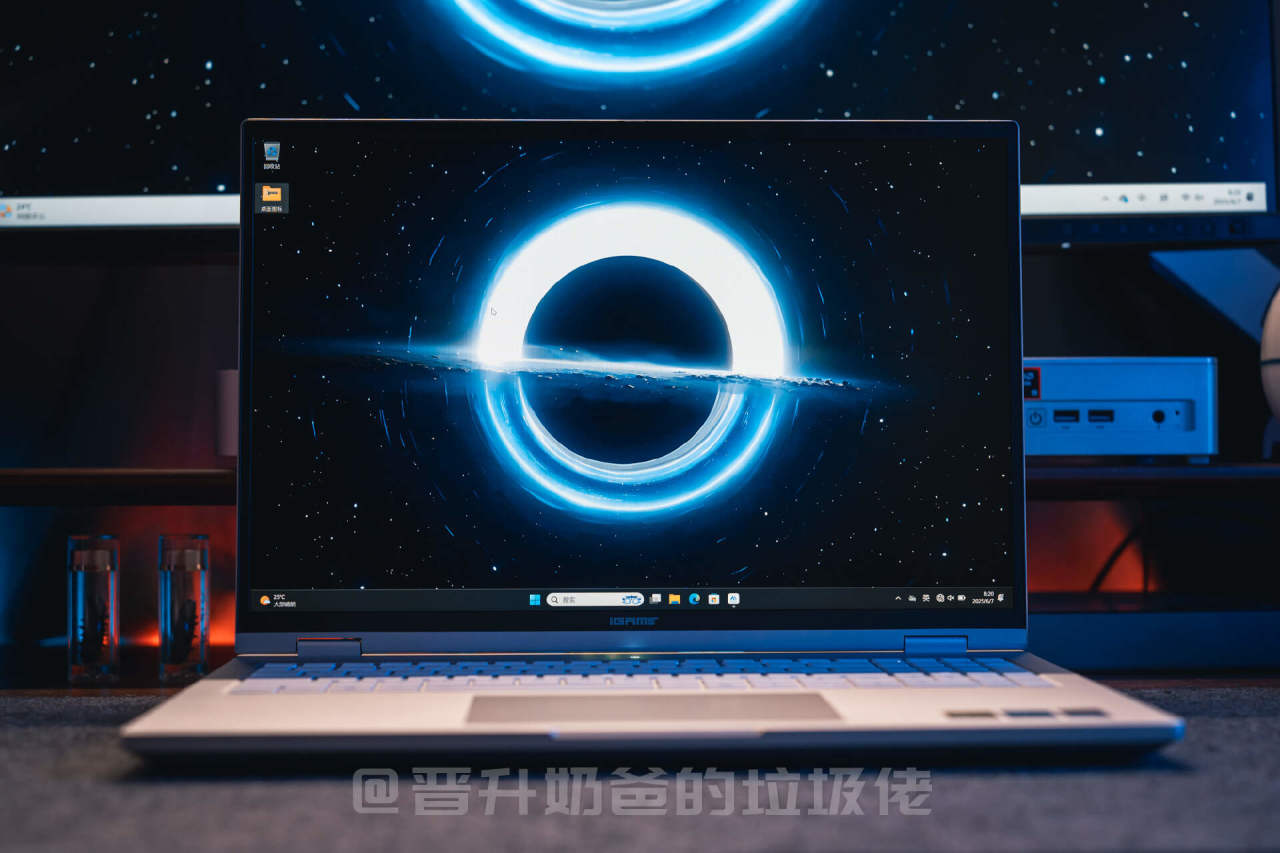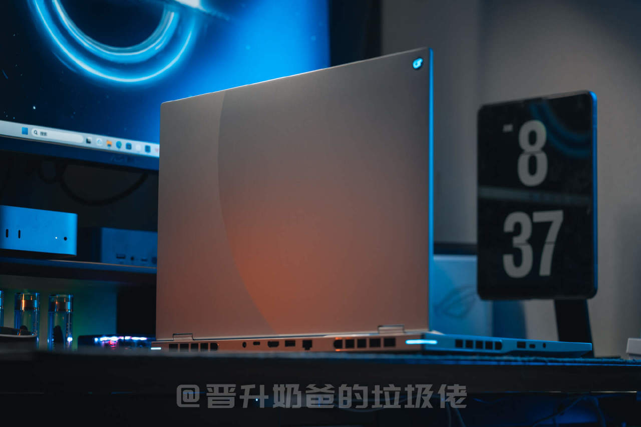 ▼电脑A面采用了极致简约的设计风格,两种阳极喷砂工艺下绘制出了一个象征宇宙奇点的圆形,增加了A免的层次感,首创的丝绒触感钝化层让笔记本电脑触感温润,灯光下质感满满。