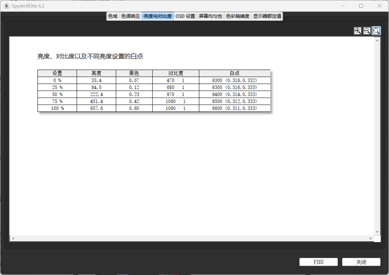 ▼最高亮度能够达到657nits,对比度最高能够来到1090:1,游戏应用中能够更好的分辨黑暗场景。注意这里测试的25%、75%亮度分别对应的是20%亮度与80%亮度。