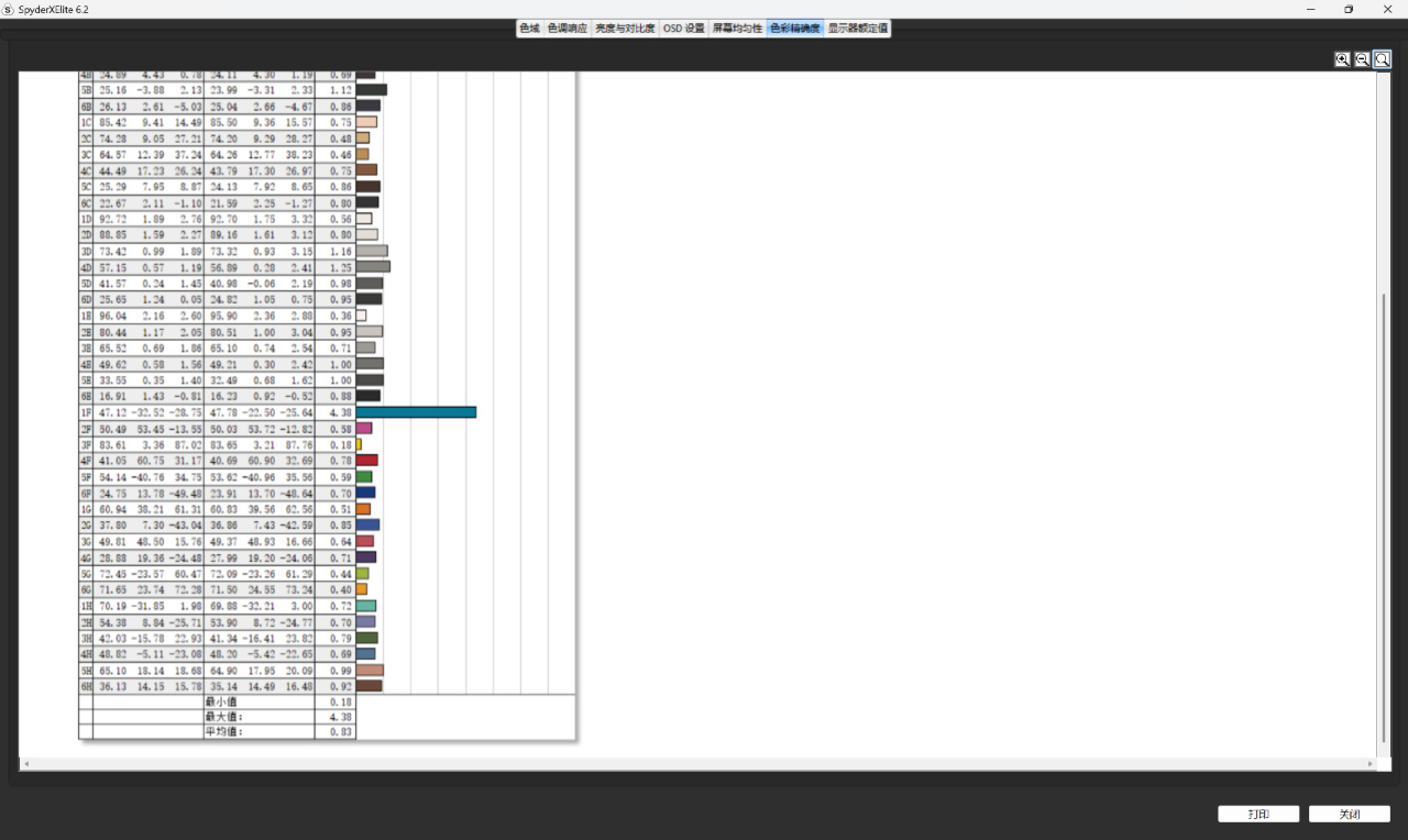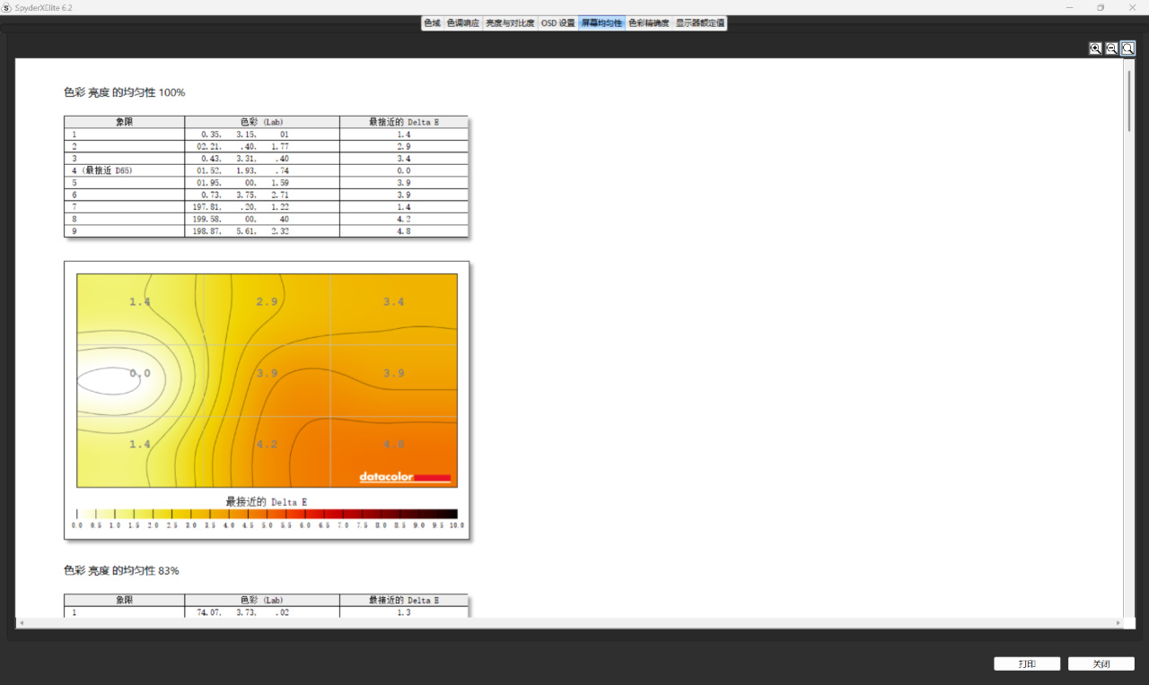 ▼色准上平均delta Δ=0.83,表现很不错。