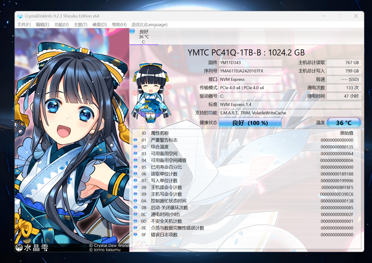 ▼七彩虹iGame M16 Origo轻薄游戏本采用了一块长江存储的1TB M.2固态硬盘,传输模式为PCIe 4.0x4,标准为NVME 1.4。