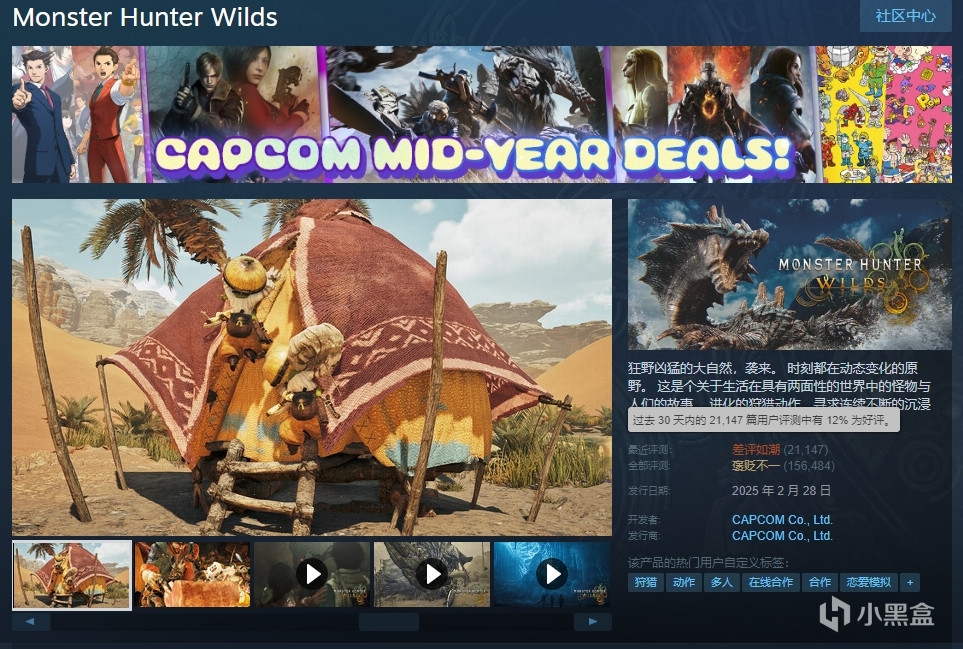值得一提的是,Steam平台上《怪物猎人:荒野》近30日的好评率已降至12%。不知道各位玩家对《荒野》此次的更新有着怎样的看法呢?