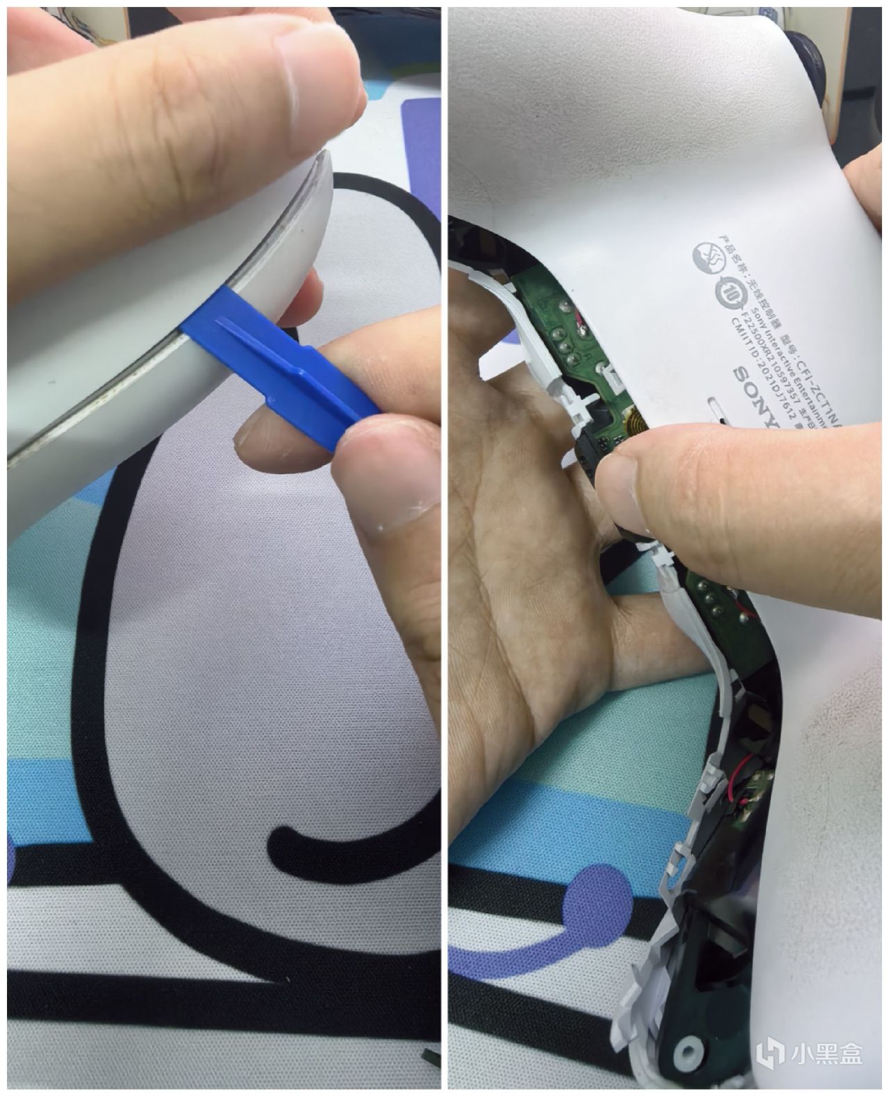 再回到頂部把R1與L1拆下來,按住扳機鍵把撬棒伸進去往外一翹即可。