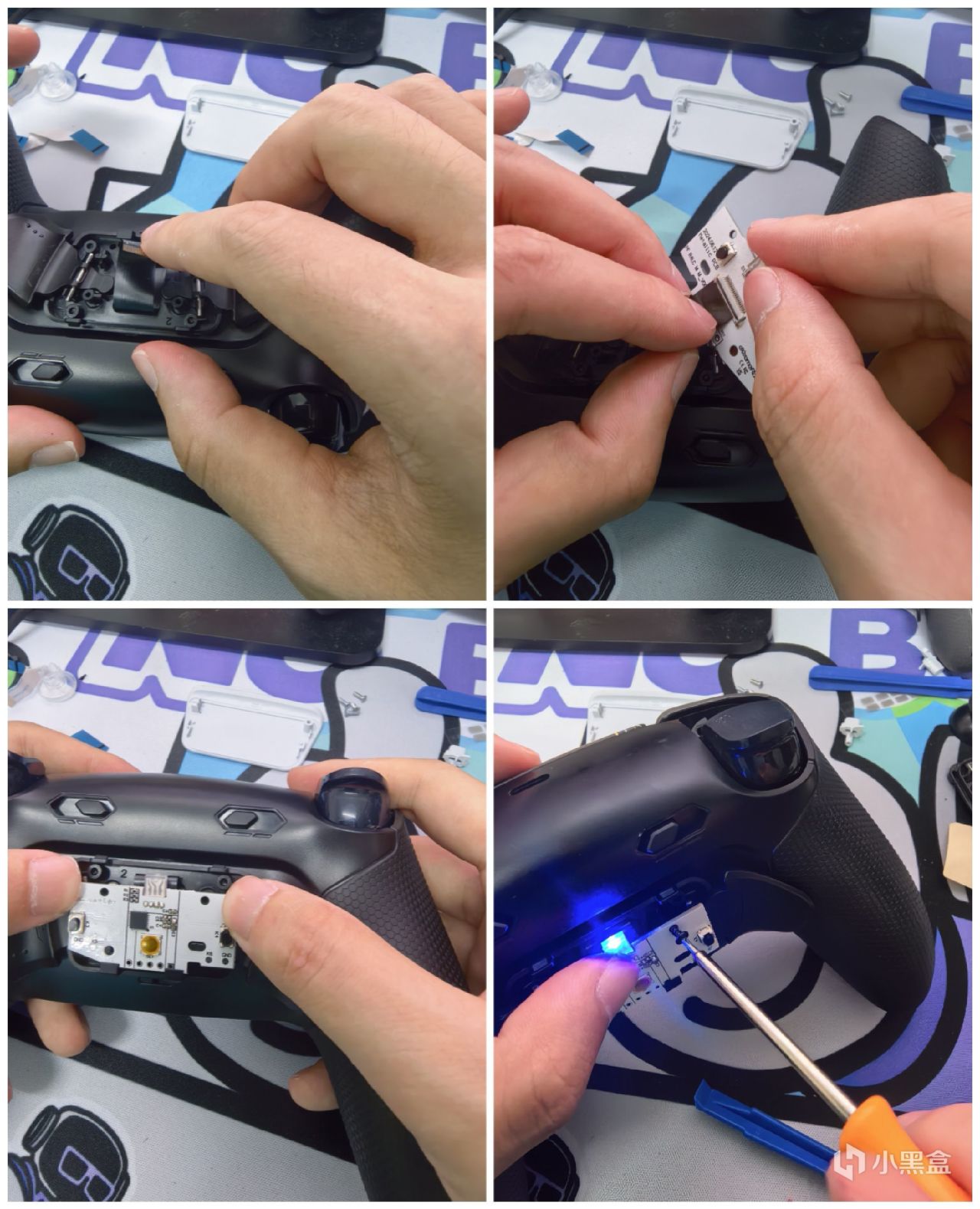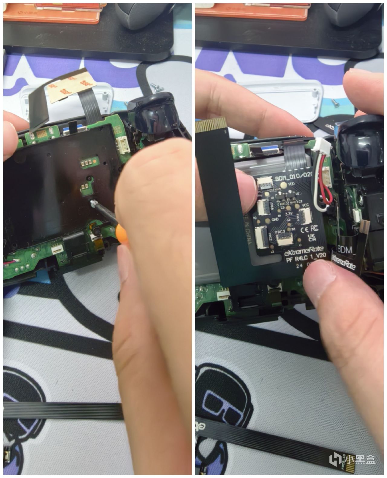 PS:這一步需要焊接,當然不焊接背鍵也可以正常用,這個排線的功能是映射R3、L3與可以讓微動扳機不觸發自適應扳機,如果你不會焊接沒有工具可以跳過這一步,除了不能映射搖桿下壓外沒有什麼區別,微動扳機也可以用,只是遊戲觸發自適應扳機時可能有一點點阻力。